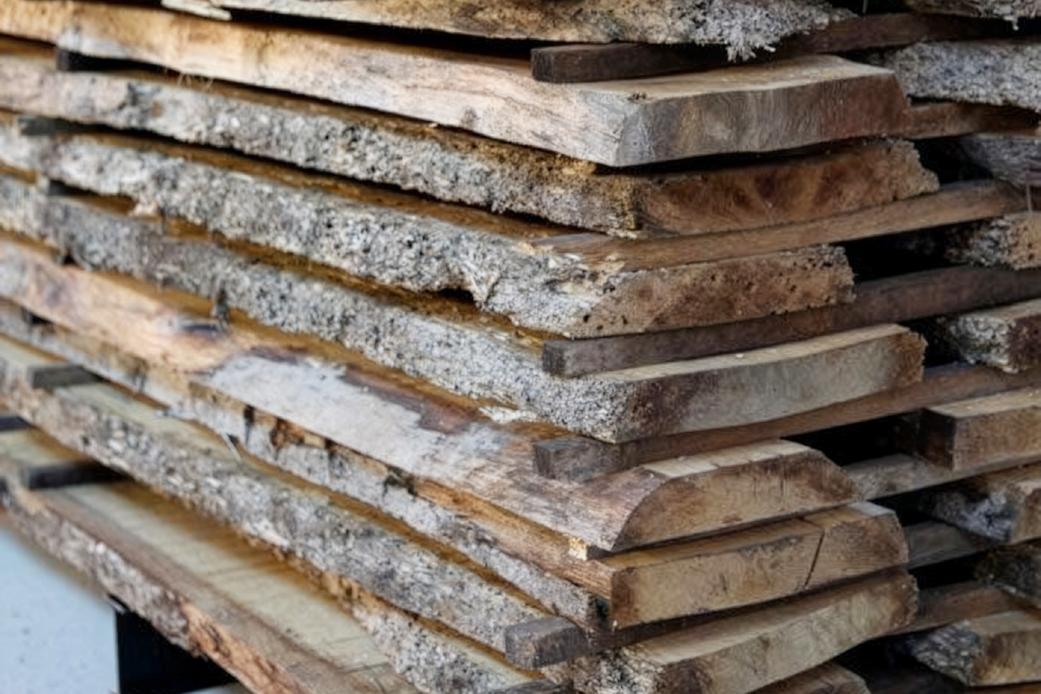 Once the Briccole are removed from the water, they are carefully dried and processed. The outer, heavily weathered layer is trimmed back to reveal sound wood inside, while preserving as much of the original texture as possible along the edges. Boards are then selected and matched for balance: enough character to be clearly Briccola, but still suitable for refined, precise furniture pieces.