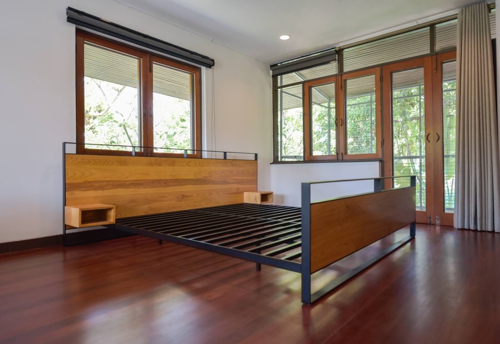 Discover the perfect blend of industrial and rustic design in our steel framed and steel legged bed, featuring solid wood accents that elevate the overall aesthetic. Constructed with durable steel, this bed is built to last while serving as a stylish centerpiece for any modern bedroom. Choose from customizable dimensions and wood type to create a unique look that flawlessly complements your personal style.