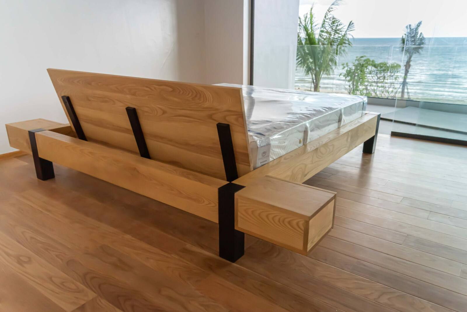 Introducing our solid wood bed with a headboard that boasts ample storage space, offering both style and practicality to your bedroom. The unique touch of a black color finish on the legs adds a distinctive charm to this bed, making it a standout piece in any decor. With customizable options for design, dimensions, wood type, and wood finish, you have the freedom to create a personalized masterpiece that perfectly matches your taste and elevates your sleeping space.
