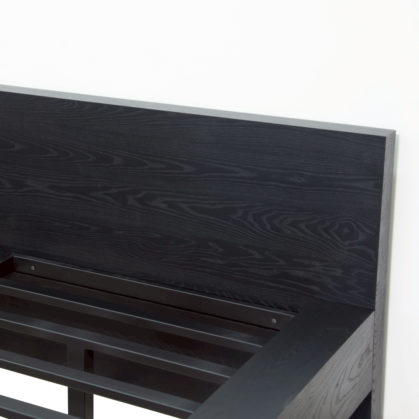 This black ash wood bed features a simple yet striking design, conveying understated luxury through crisp wood‑grain lines and proportions engineered for practical use. Constructed from high‑quality ash, it is strong, durable, and provides reliable weight support, while the natural grain is finished in a refined black to give a deep, calm yet powerful tactile presence. The bed’s open, sturdy base promotes airflow for long‑term comfort and adds dimensional styling to the room.