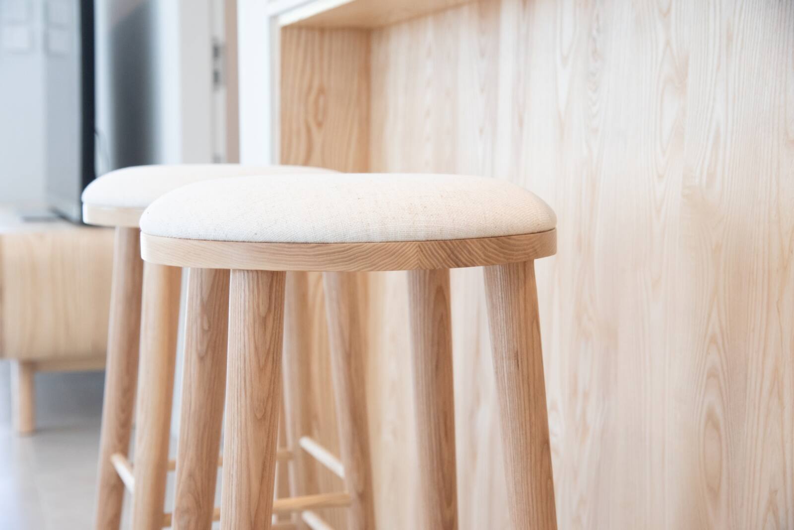 Our barstool featuring a plush fabric cushion seat atop a solid wood base and legs. Enjoy multiple foot rest heights that ensure seating comfort. Choose from a wide range of customizable wood options and finishes to match your decor seamlessly. Complete the personalized look with customizable fabric colors that add a touch of vibrancy or sophistication to your space. Elevate your seating experience with our customizable barstool, combining comfort, style, and functionality in one piece.