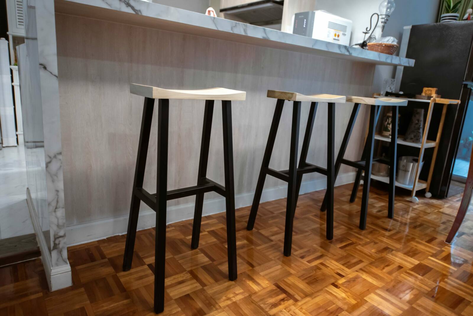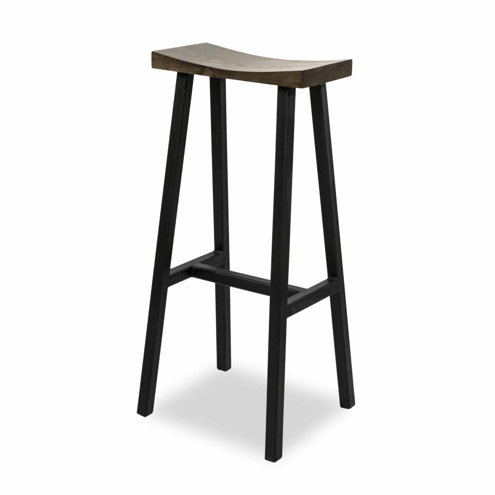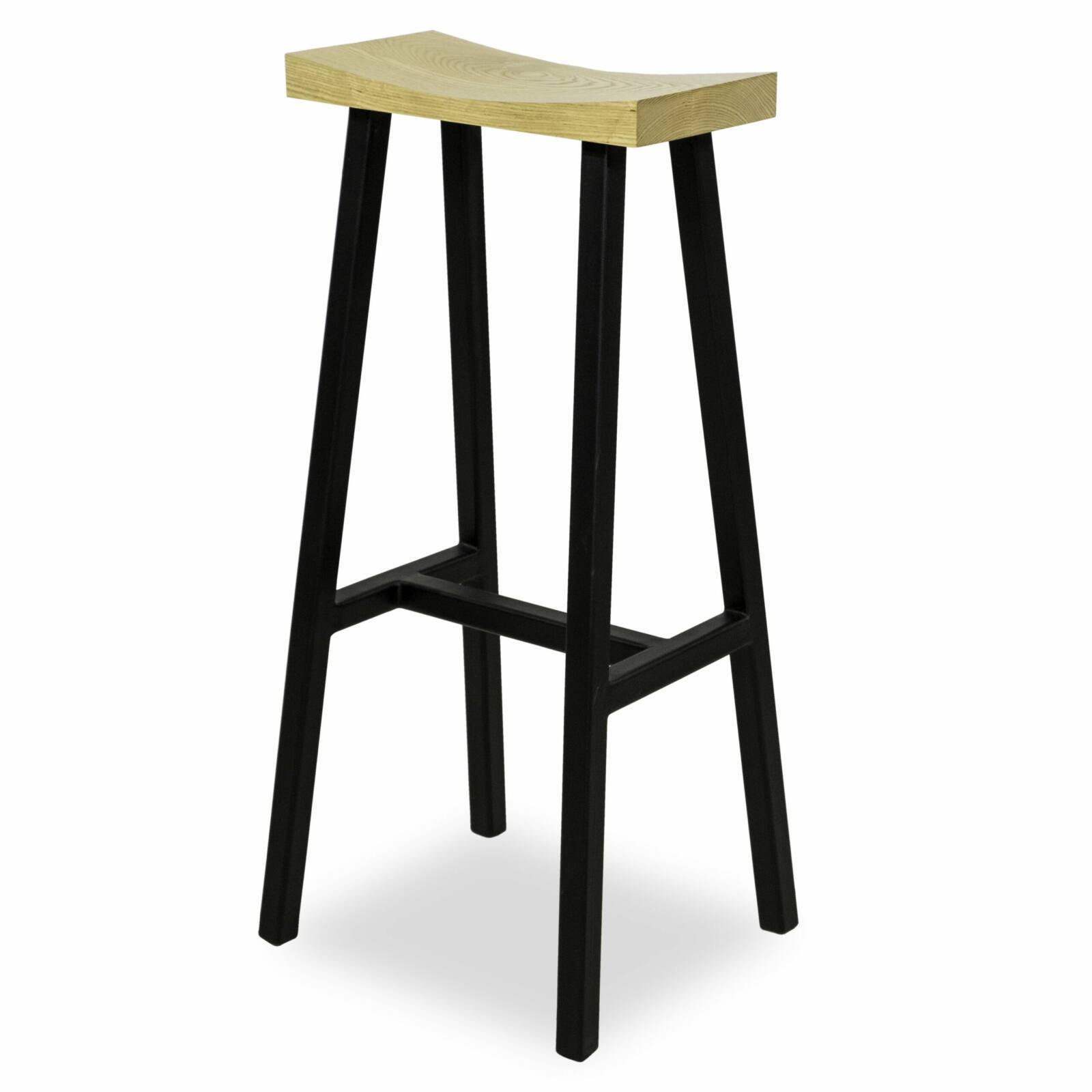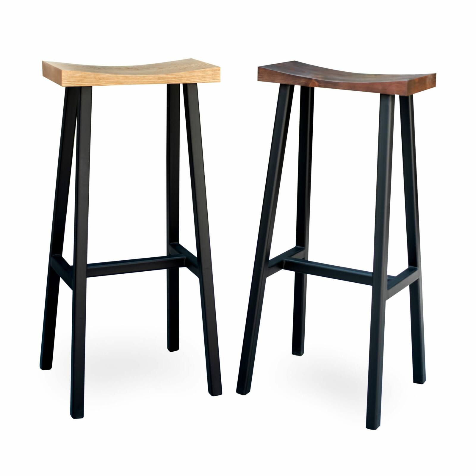 Add a touch of contemporary flair to your bar or kitchen with our minimalist backless wood and steel bar stool. The sleek design features a wooden seat and steel legs for a chic and modern look. Customize your stool with options for dimensions, wood type, and wood finish to create a one-of-a-kind piece that perfectly suits your space.
