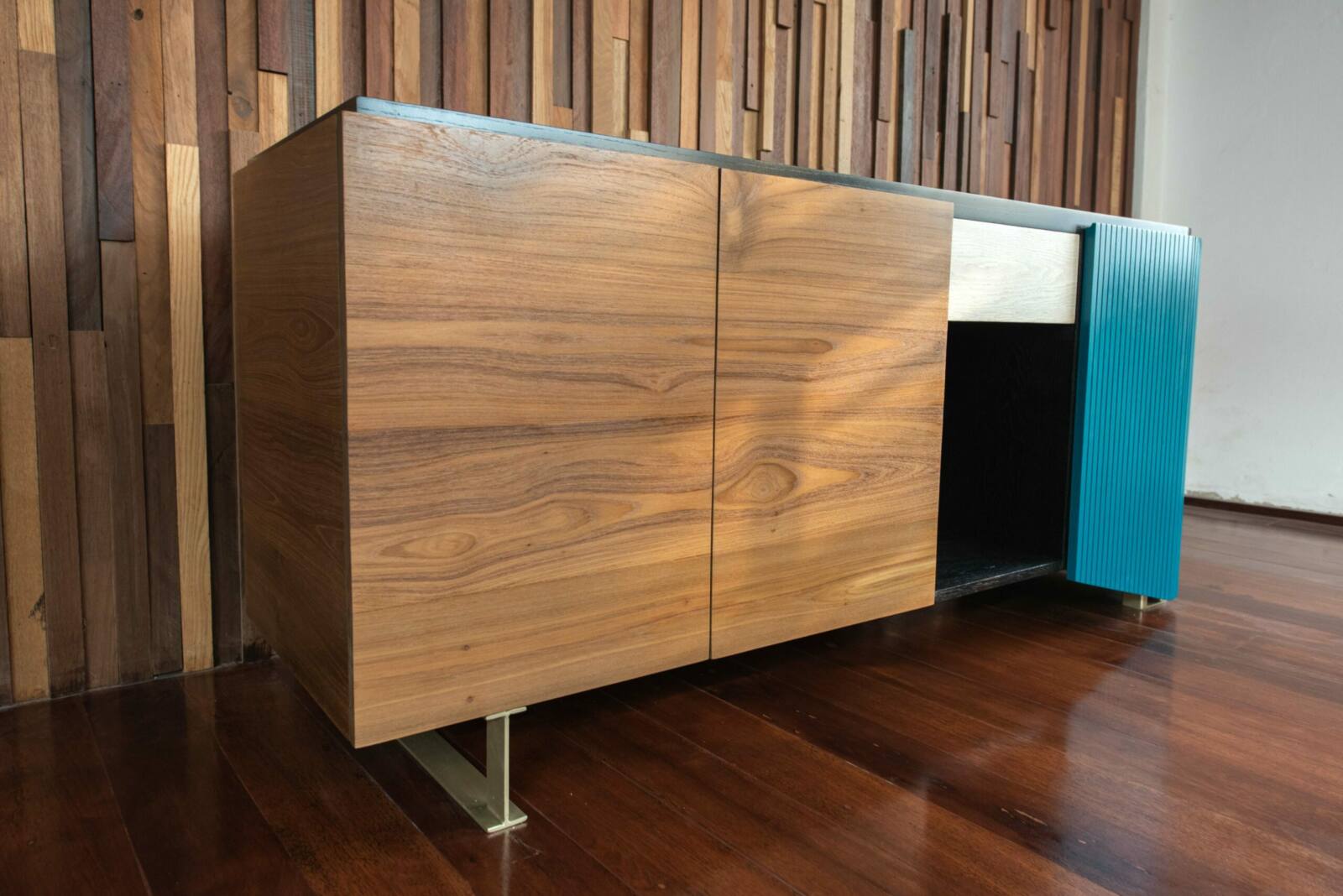 Add character to your space with our stylish wood cupboard, featuring a unique sliding door and a sleek steel base. With customizable options for wood type, colors, dimensions, and design, this piece can be tailored to perfectly align with your decor style. Our unique finish adds an elegant touch and guarantees that your wood cupboard will be one of a kind, providing both functional storage and a statement piece in any room.