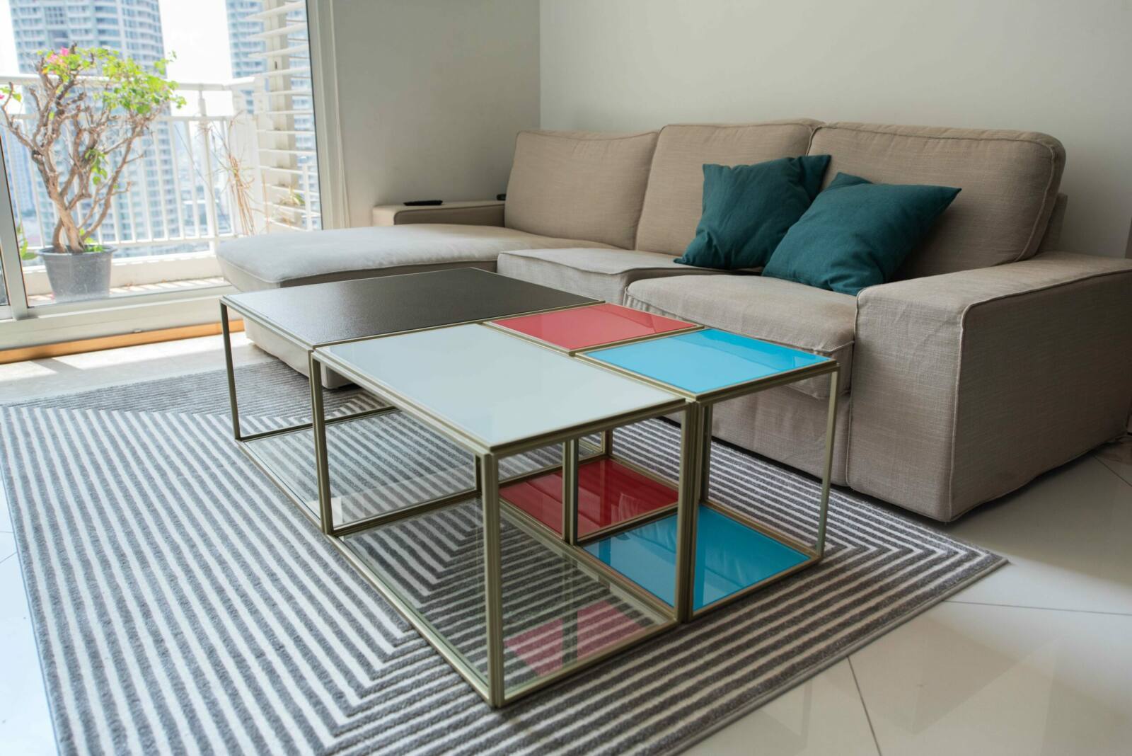 Introducing our modern glass and steel coffee table, featuring a sleek design that combines glass with the strength of steel. The colored glass adds a pop of vibrant beauty to this contemporary piece, making it a focal point in any room. With customizable dimensions and a variety of color options, you can create a coffee table that perfectly matches your style and adds a touch of style to your living space.