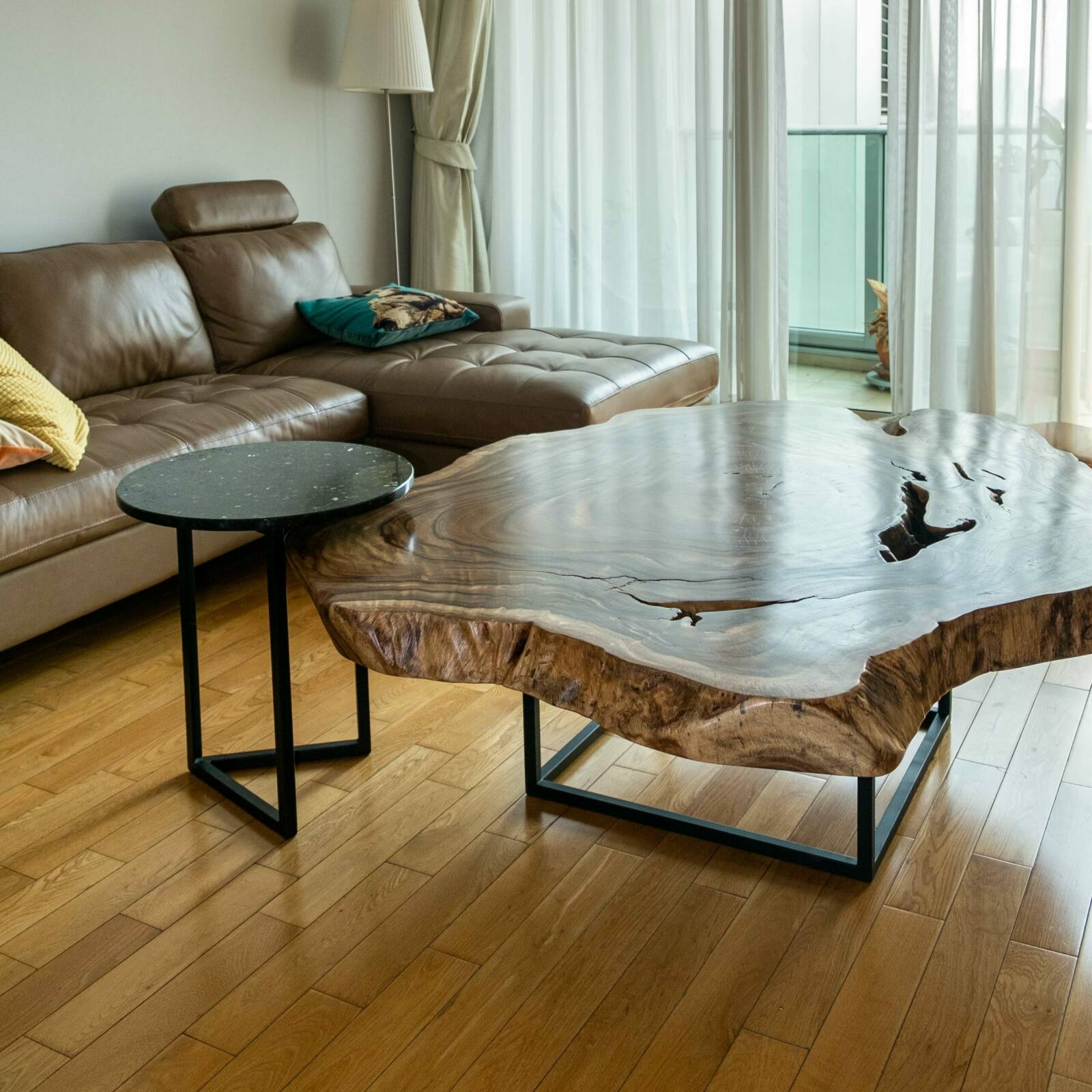 Introduce a touch of nature into your home with our stunning live edge chamchuri coffee table. The unmistakable beauty of the natural wood grain is showcased in this one-of-a-kind piece, while the live edge design adds a rustic charm to your living space. Supported by sleek steel legs and base, this coffee table effortlessly combines modern and organic elements, creating a unique centerpiece that will elevate your home decor.