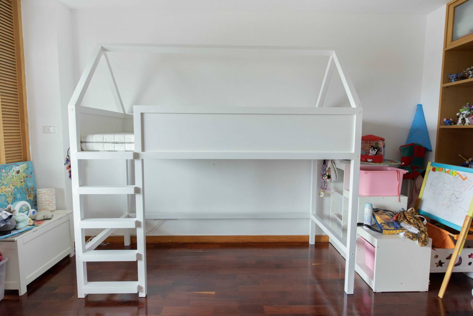 Elevate your child’s room with our solid wood children’s loft bed featuring a charming house-shaped top design. With a sturdy ladder for easy access to the bed and ample space underneath, this loft bed creates a perfect play area or storage space for toys and essentials. Customize the design, dimensions, and child-safe colors to create a personalized and safe haven that combines fun, functionality, and style in one delightful package.