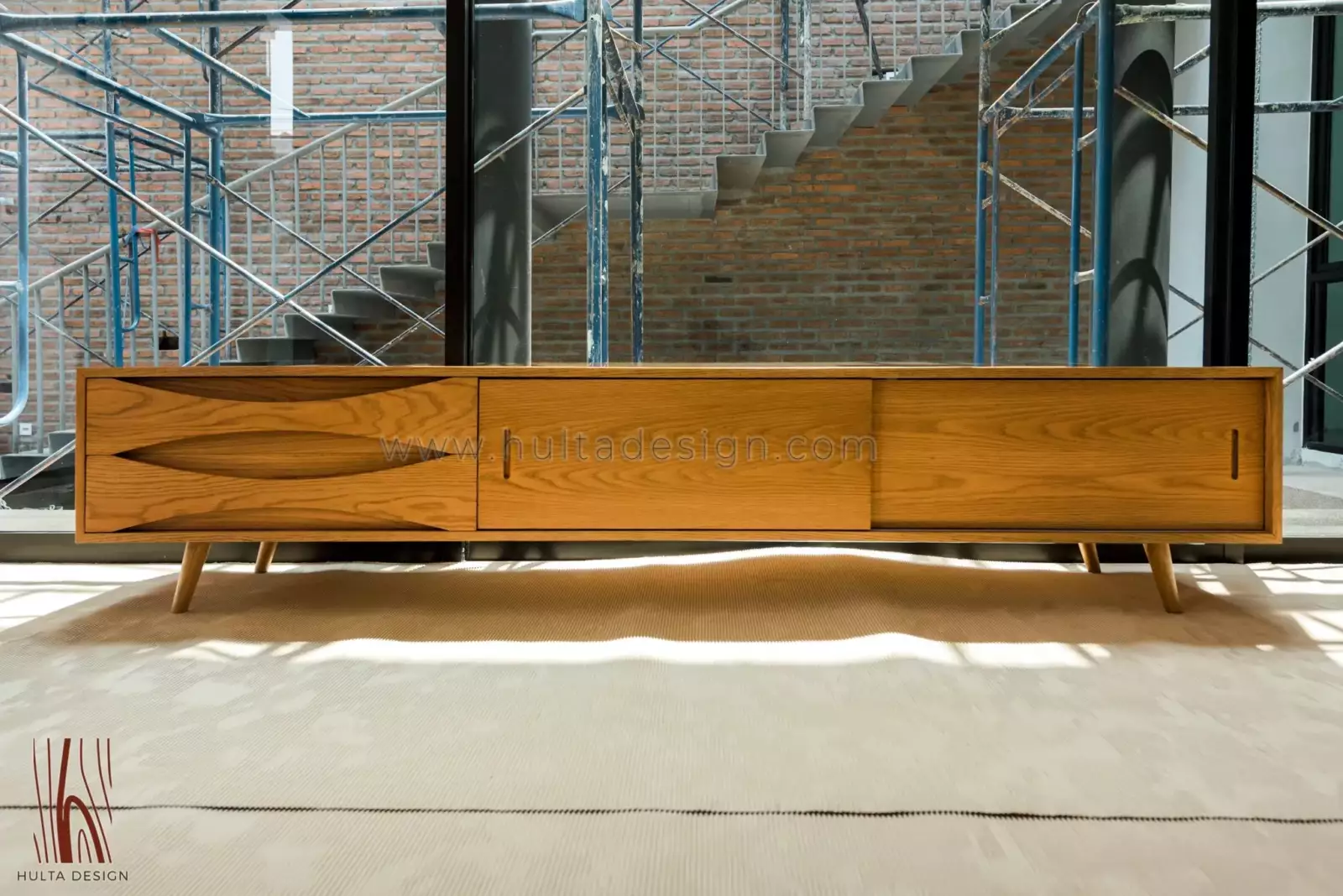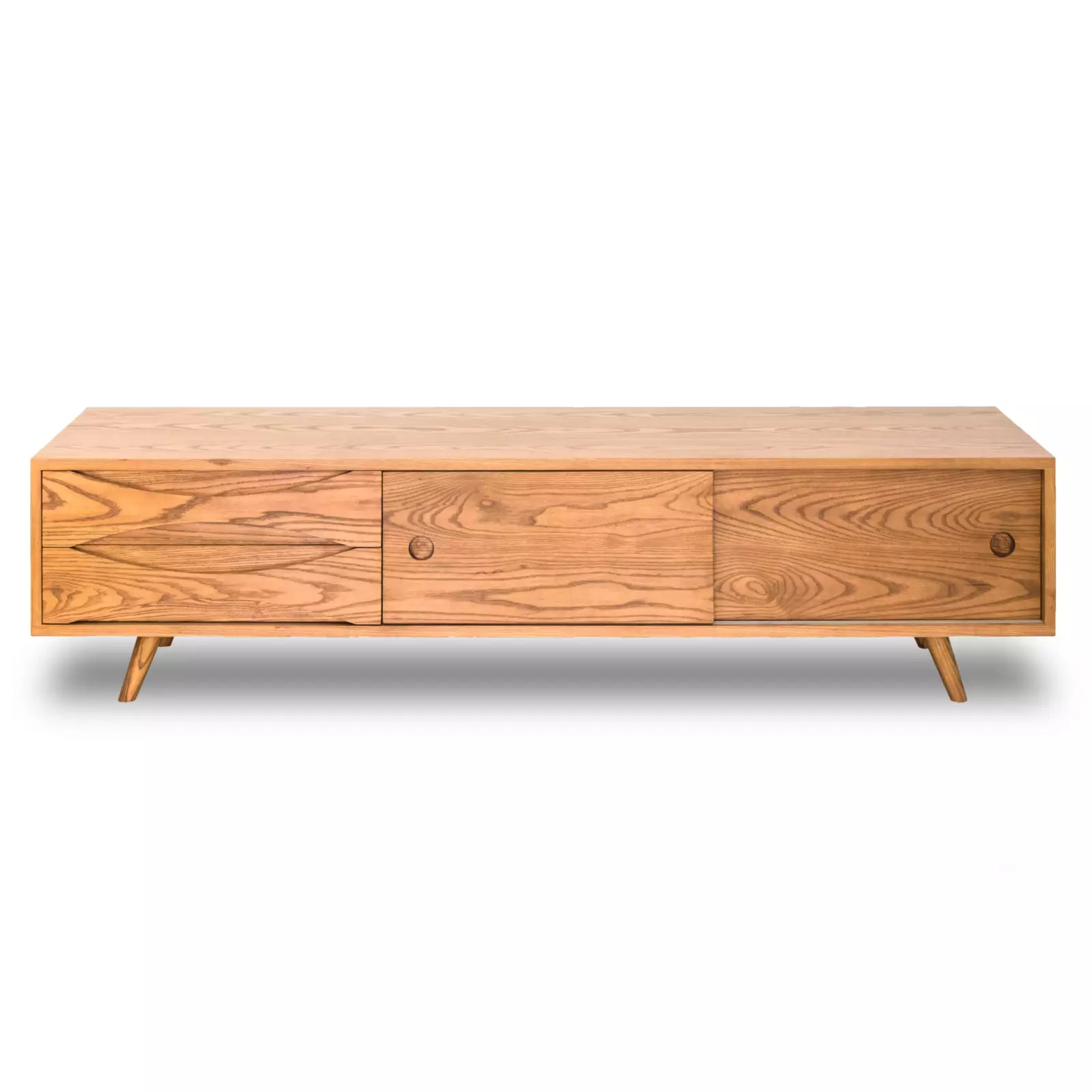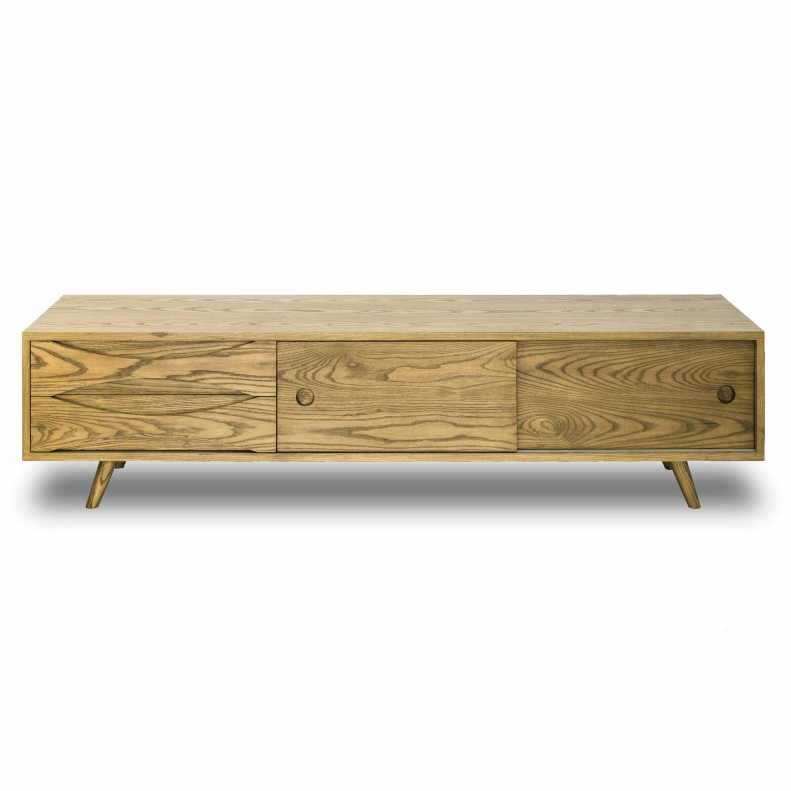 Upgrade your entertainment area with our solid oak TV console, featuring sliding doors that combine functionality and style. The unique drawer handles, carved into the drawers, add a touch of craftsmanship and sophistication to the design. With plenty of cabinet space and customizable dimensions, wood type, and color options, you can create a personalized console that perfectly suits your aesthetic preferences and storage needs.