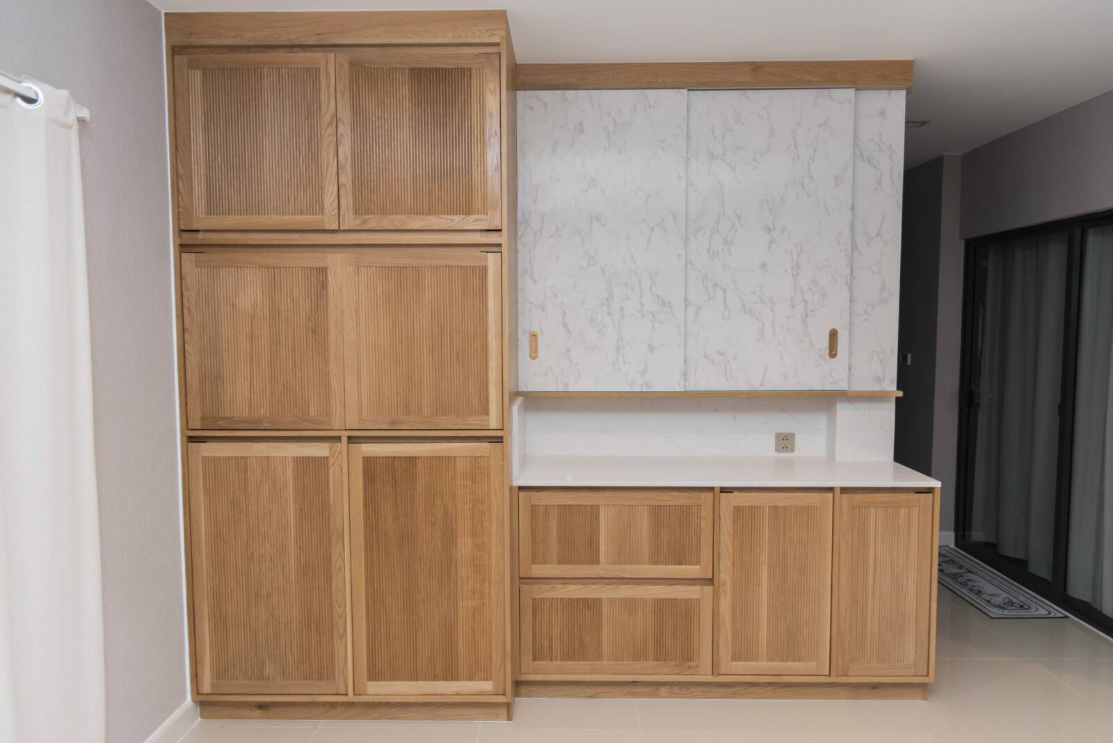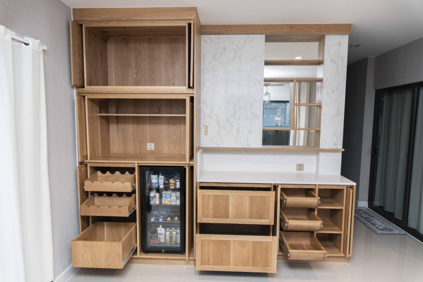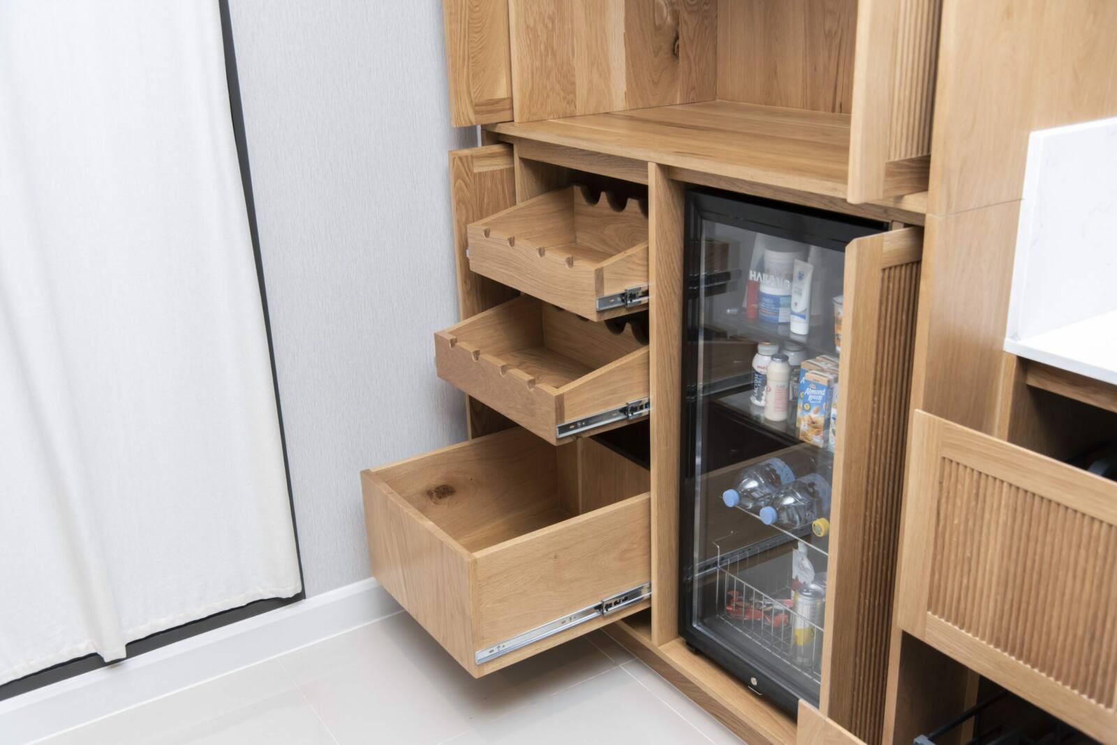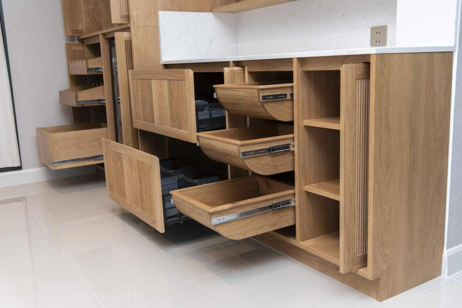 Create your dream kitchen with our exquisite kitchen counter and cabinets, crafted from Solid American Oak for its timeless beauty and durability. The Quartz countertop adds a luxurious touch, while the quartz cupboard doors provide a sleek and modern aesthetic. With customizable dimensions, design, and wood finish options, our cabinets offer both functionality and style, allowing you to personalize every detail to suit your taste and needs.