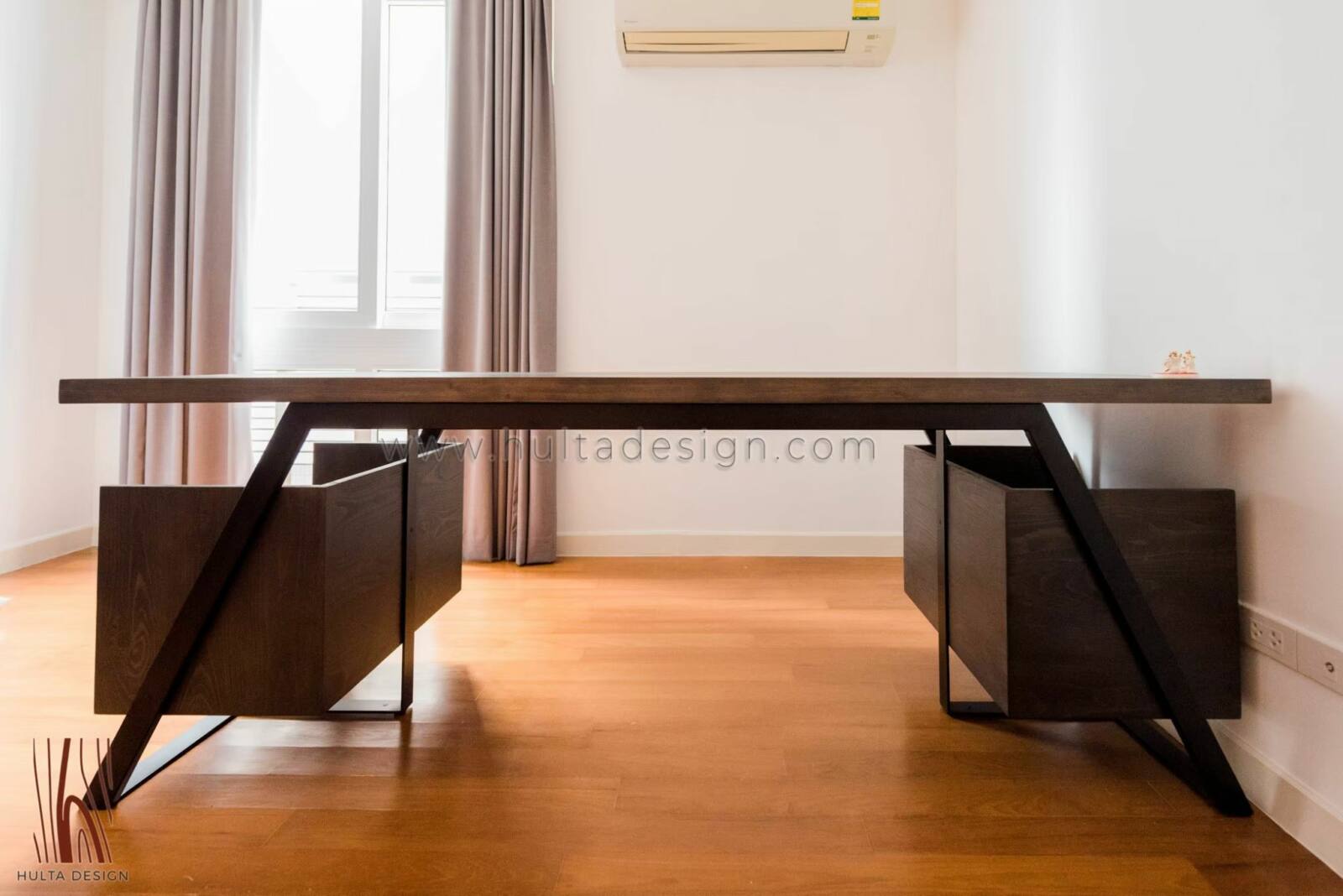 Experience the perfect blend of natural charm and industrial style with our wood and steel work desk. Crafted with a thick solid wood tabletop and supported by steel legs and frame, this desk offers both durability and a contemporary aesthetic. The unique and spacious shelves provide ample storage for your work essentials, while the customizable options for wood types, finish, and dimensions allow you to tailor the desk to your specific preferences, making it a centerpiece in your workspace.