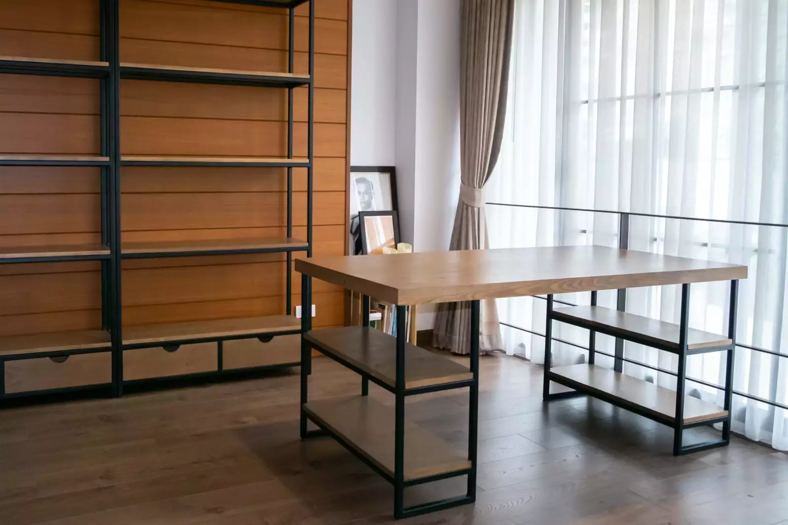 Discover the perfect balance of elegance and durability with our wood and steel work desk. Designed with four shelves, steel legs, and a steel frame, this desk offers ample storage and stability for your work essentials. Plus, with customizable options for wood types, finish, and dimensions, you can create a personalized desk that fits seamlessly into your workspace while showcasing your individual style.