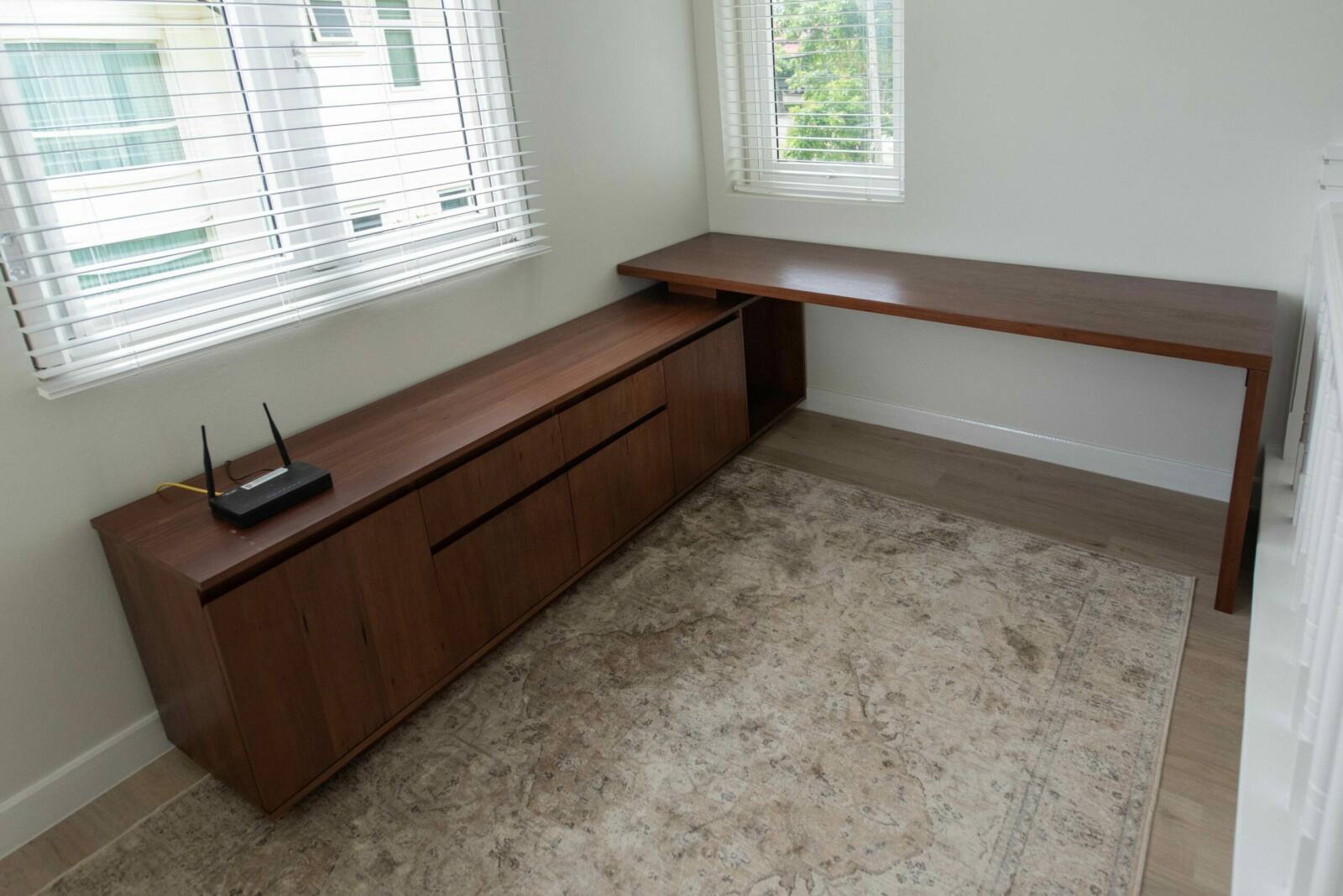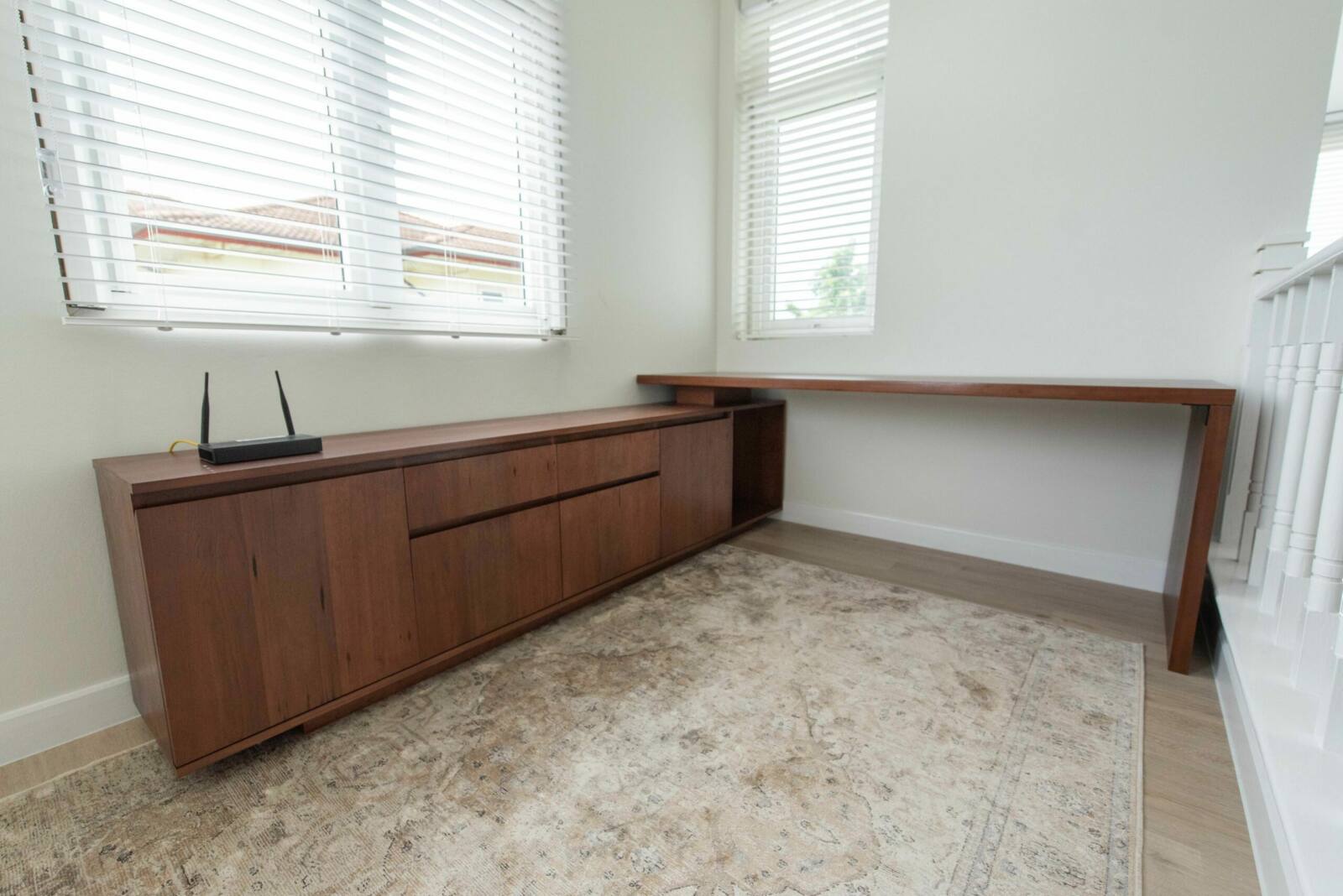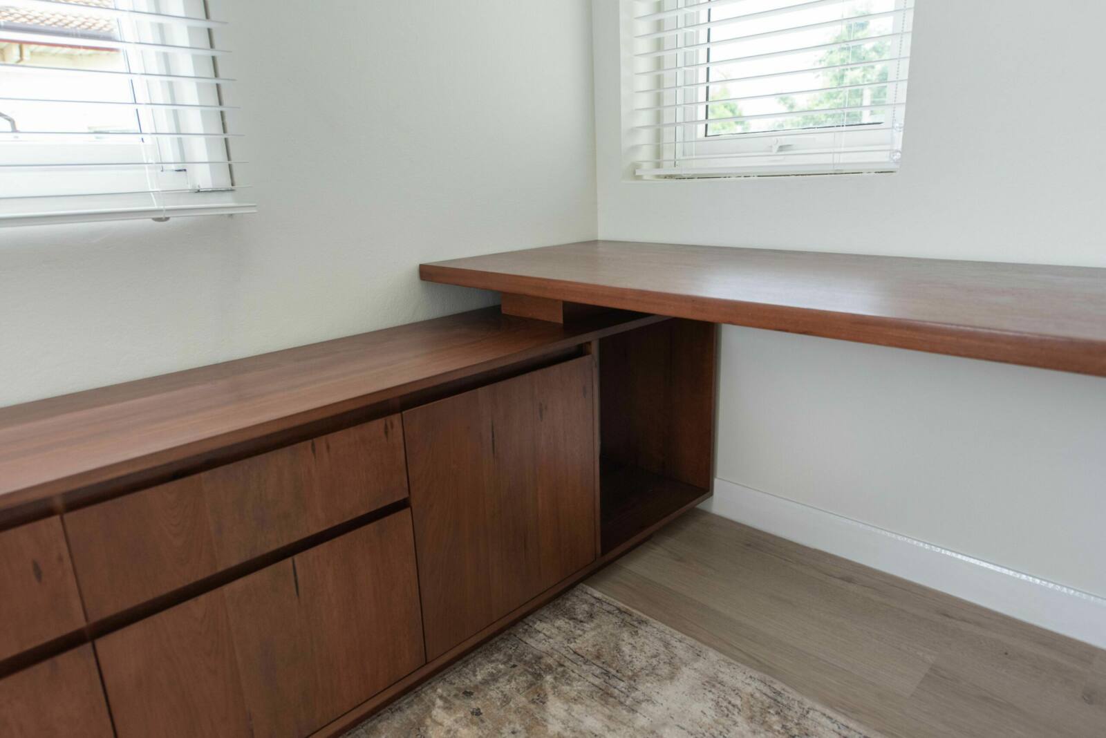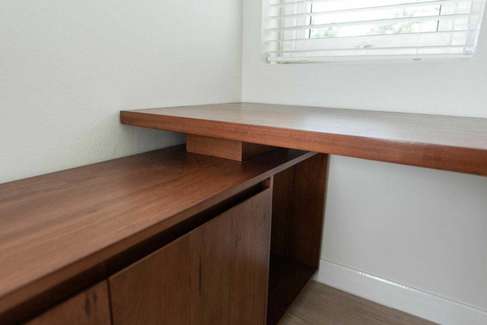 Discover the beauty of our solid wood desk and cabinet, expertly crafted from stained American ash to add a touch of elegance to your home office. Offering ample storage space, this furniture piece is designed to seamlessly fit into your living space, providing both functionality and style. With customizable options for wood type, wood finish, dimensions, and design, you can create a personalized workspace that perfectly suits your needs and reflects your unique taste.