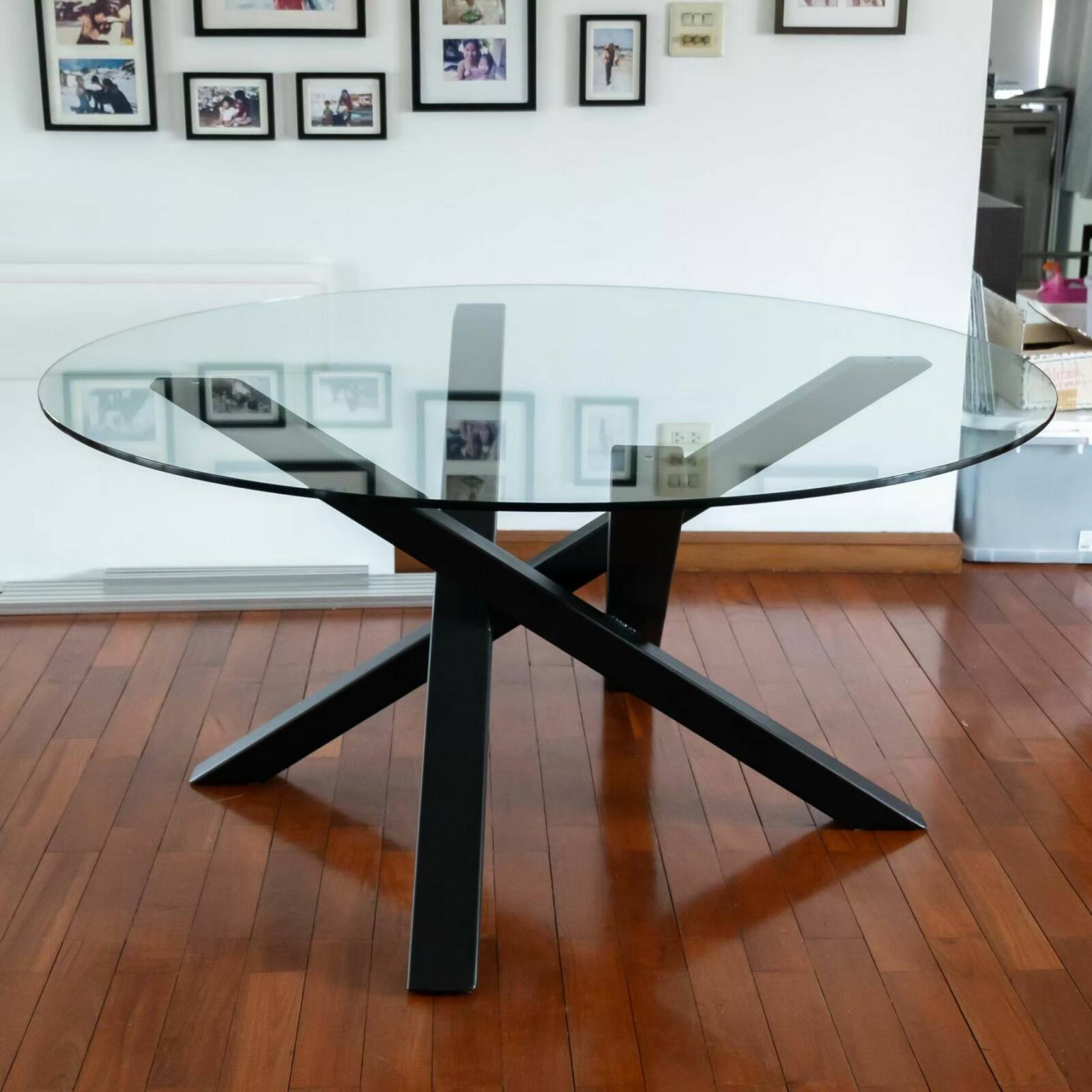 Elevate your dining experience with our stunning round glass top dining table, boasting a sleek black powder-coated steel base and legs. The transparent glass top exudes sophistication and allows for an unobstructed view of the stylish steel frame below. With customizable design, options for steel powder-coated color choices, and adjustable dimensions, you can create a unique and personalized dining table that effortlessly enhances your home decor.