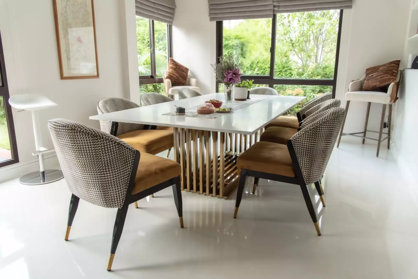 Enhance your dining space with the timeless sophistication of our marble top dining table, featuring a stainless steel base and legs powder-coated in a luxurious gold color. The exquisite marble top adds a touch of opulence and creates an elegant focal point for your dining area. With customizable options for design, powder-coated colors, and dimensions, you have the flexibility to create a truly bespoke dining table that reflects your distinct style and elevates your dining experience.