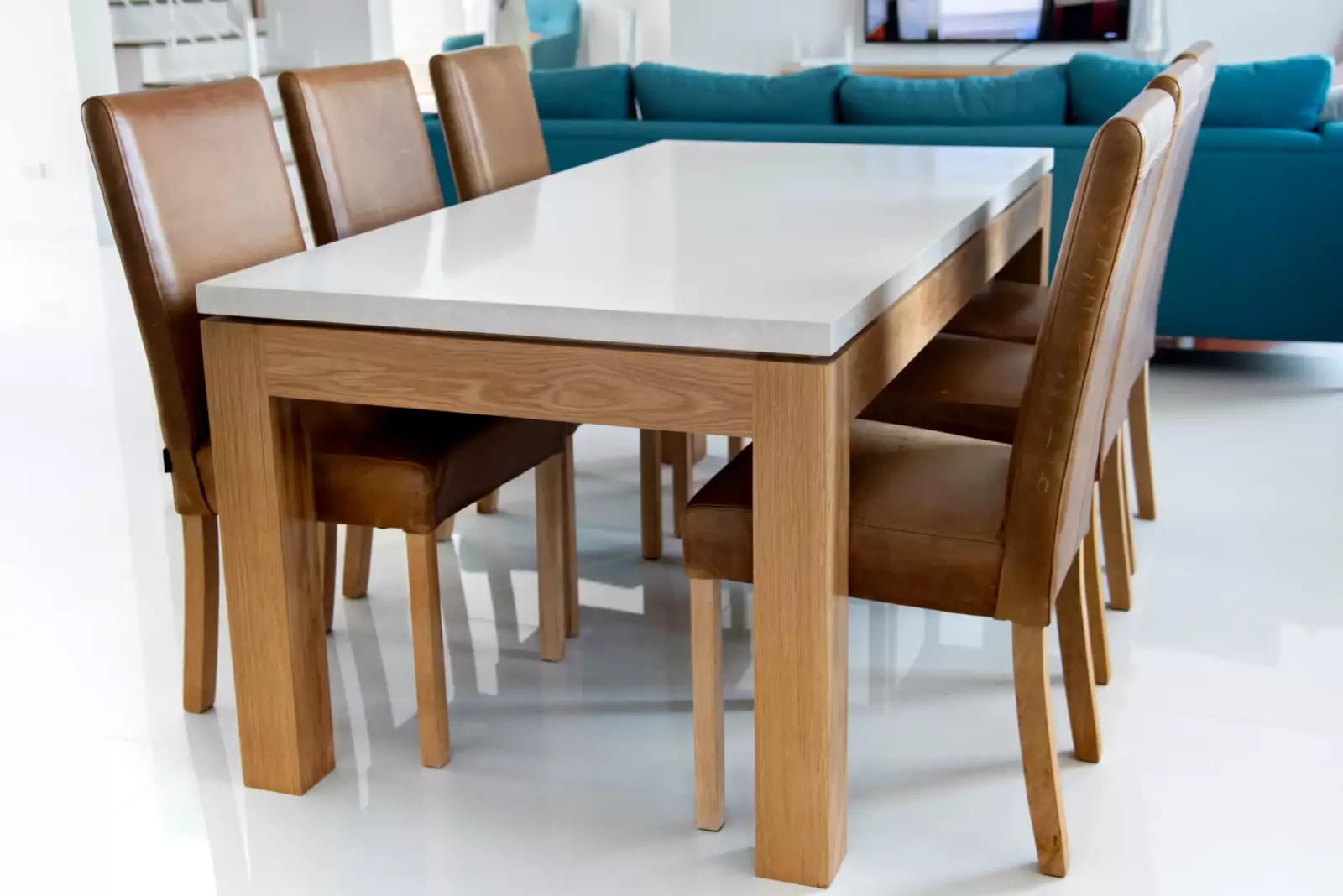 Our stunning stone top dining table, built with a solid American ash base and legs that exude natural beauty and durability, is perfect for any home. The customizable design allows you to choose from a range of stone types and wood types, ensuring a perfect match to your existing decor. With customizable options for wood finish and dimensions, you can create a unique and personalized dining table that not only elevates your dining experience but also serves as a statement piece in your home.