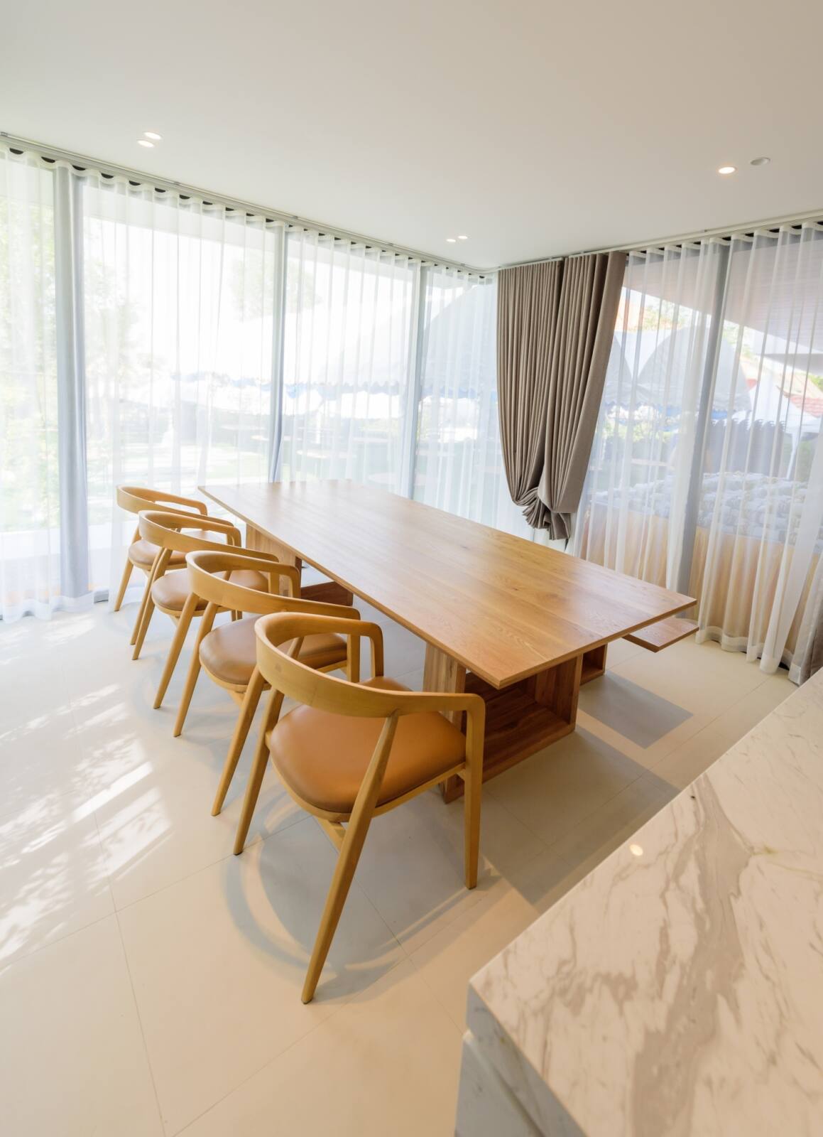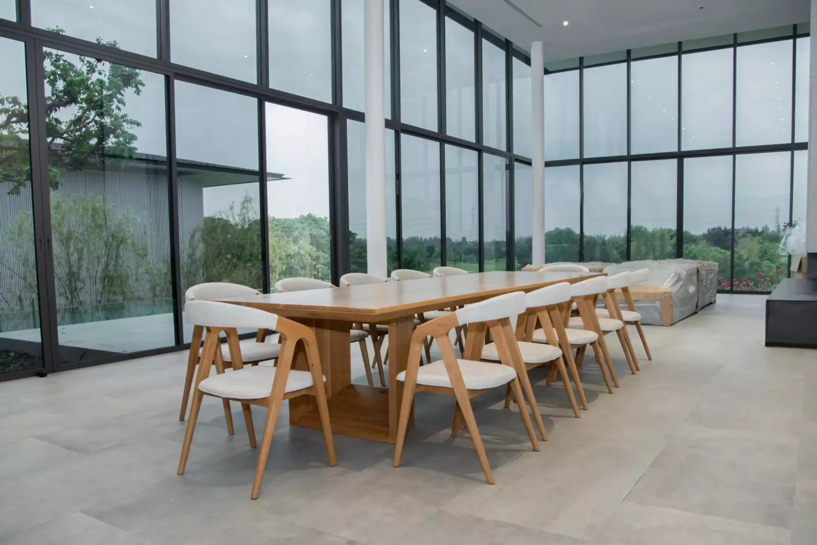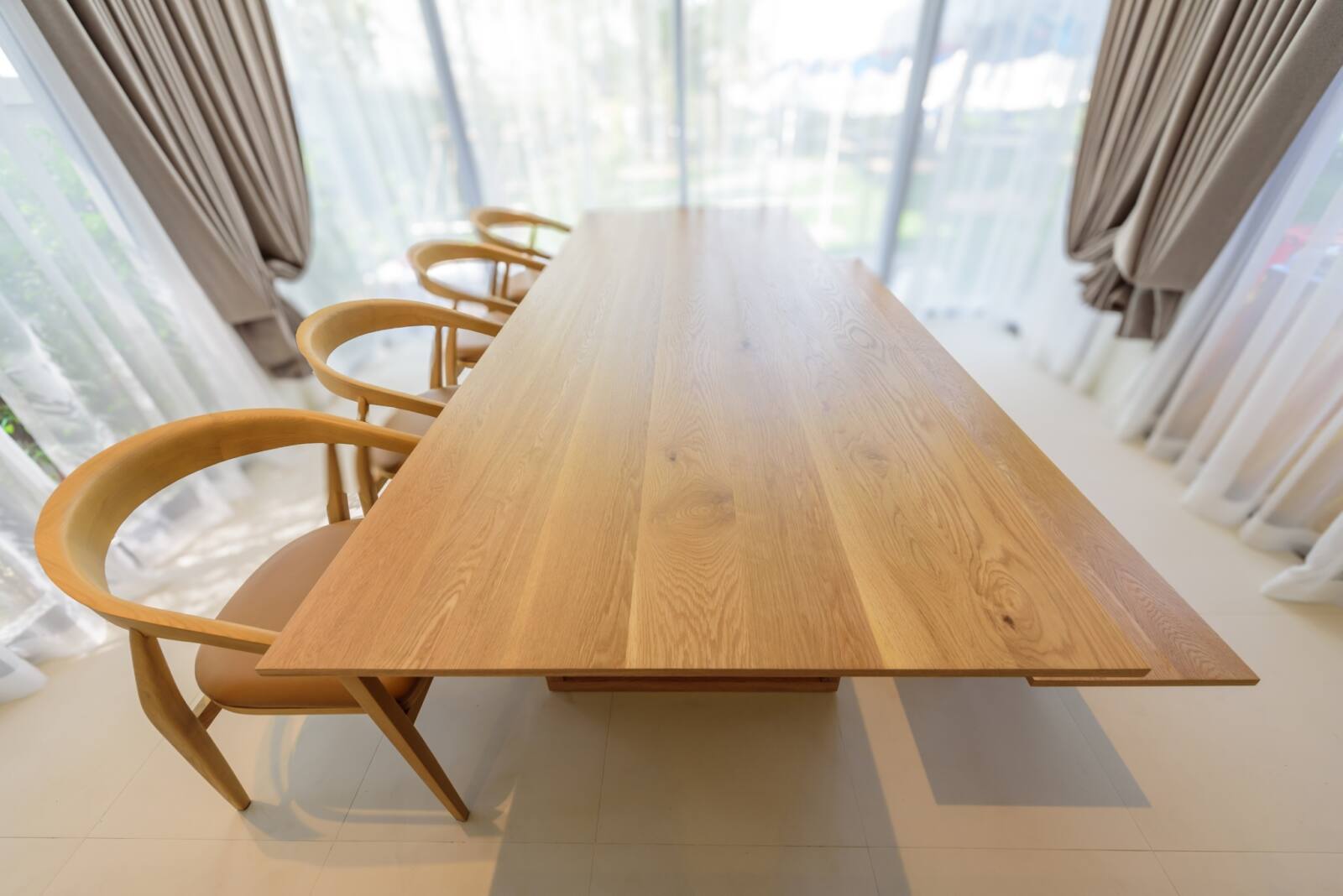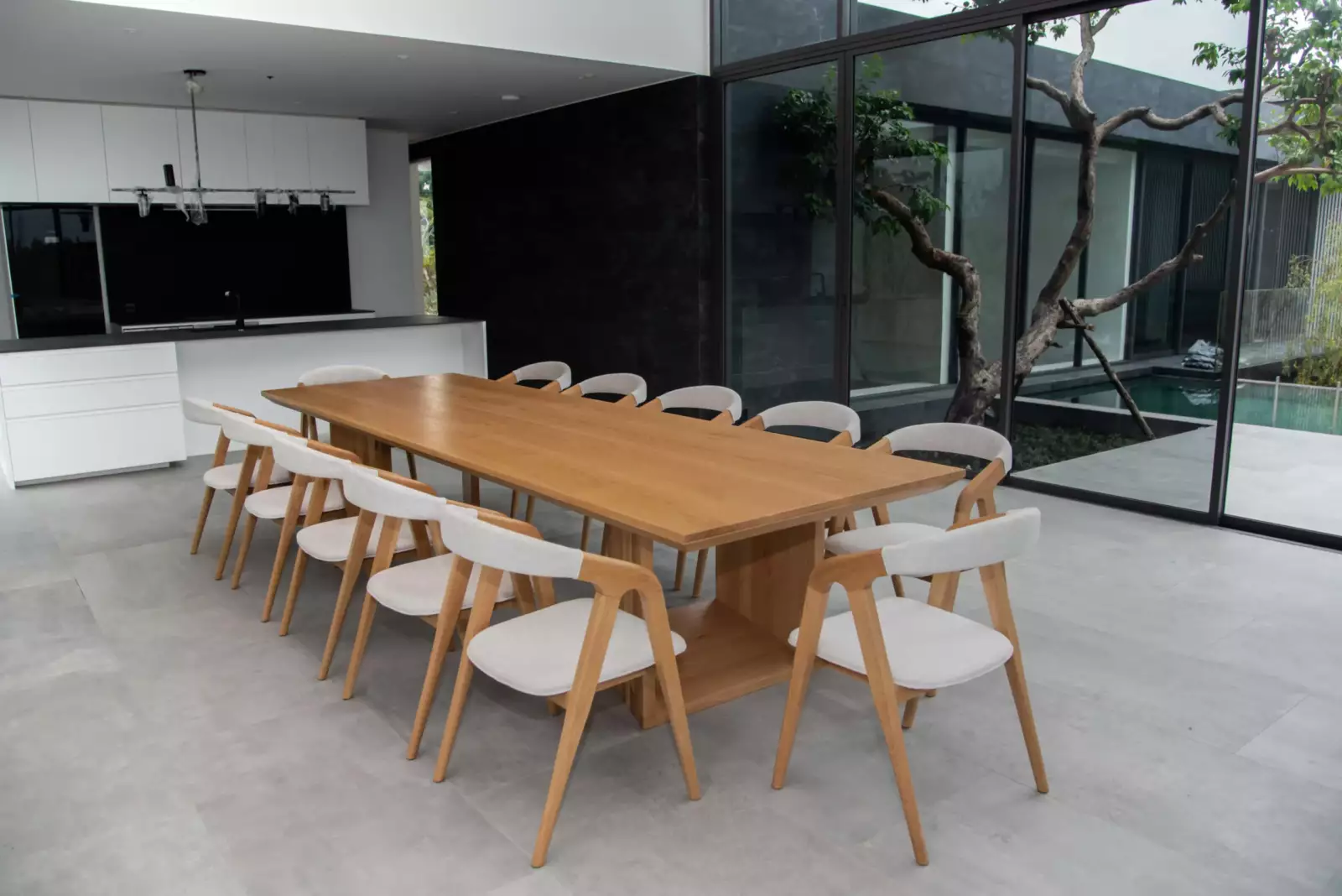 Introducing our exquisite solid wood dining table, expertly crafted from the highest quality American oak, complete with a striking thick solid oak leg design. Embrace the freedom to customize every aspect of your dining table, from the design, wood type, and wood finish to the dimensions, allowing you to create a one-of-a-kind centerpiece that seamlessly blends with your unique style and space. This table is not only a functional piece but also a work of art that will elevate your dining experience with its timeless beauty and undeniable durability.