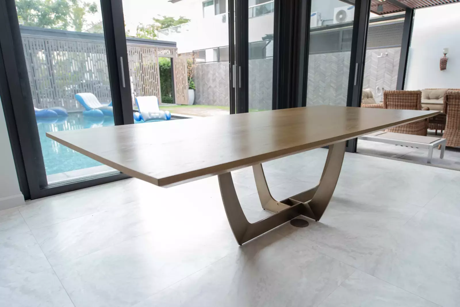 Experience the perfect fusion of contemporary design and natural beauty with our solid wood dining table crafted from exquisite chamchuri wood. The sleek steel legs and base add a modern touch, while the customizable options for wood type, wood finish, and dimensions allow you to create a dining table that seamlessly fits your unique style and living space. Elevate your dining experience with this customizable masterpiece, promising exceptional durability and timeless elegance for years to come.