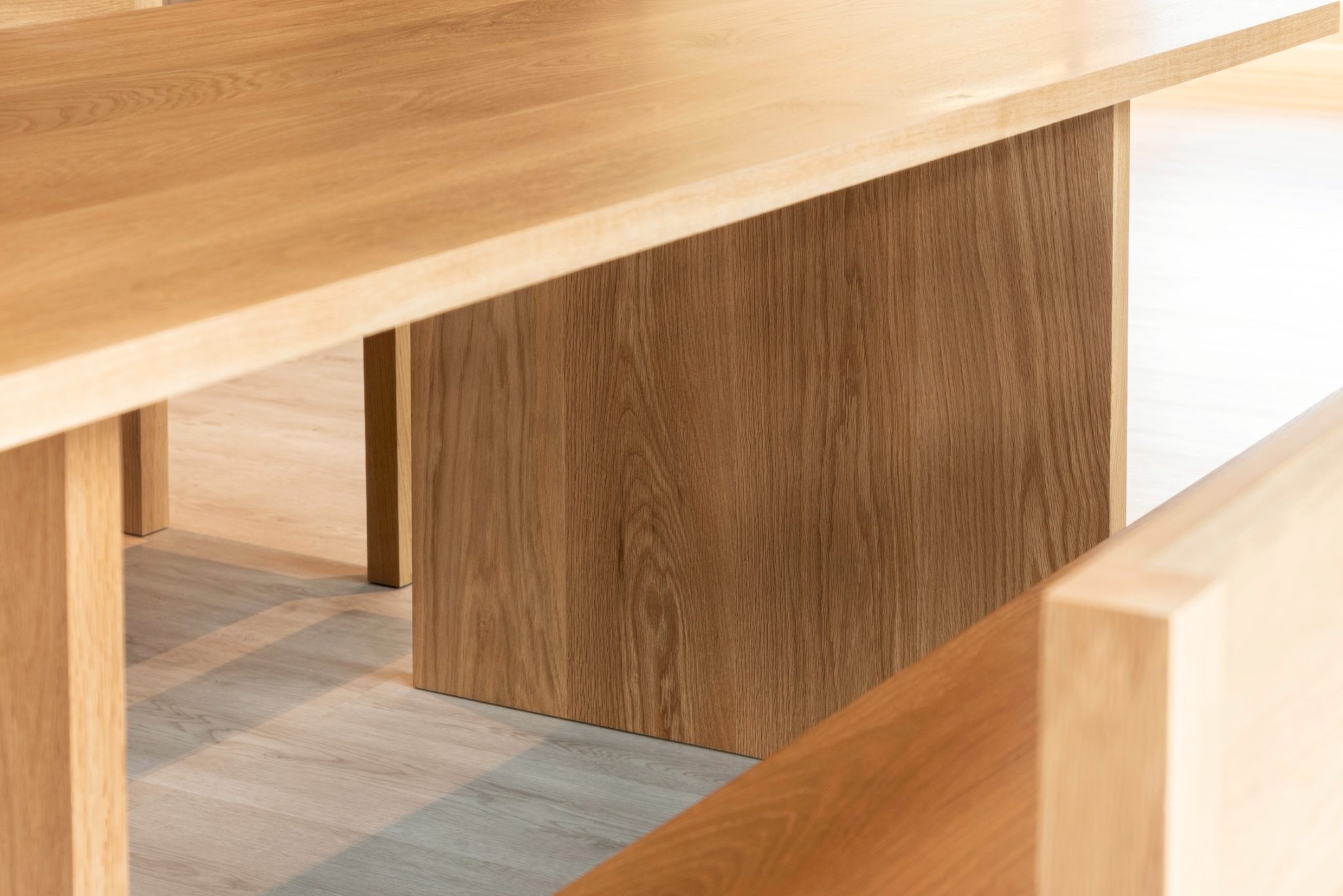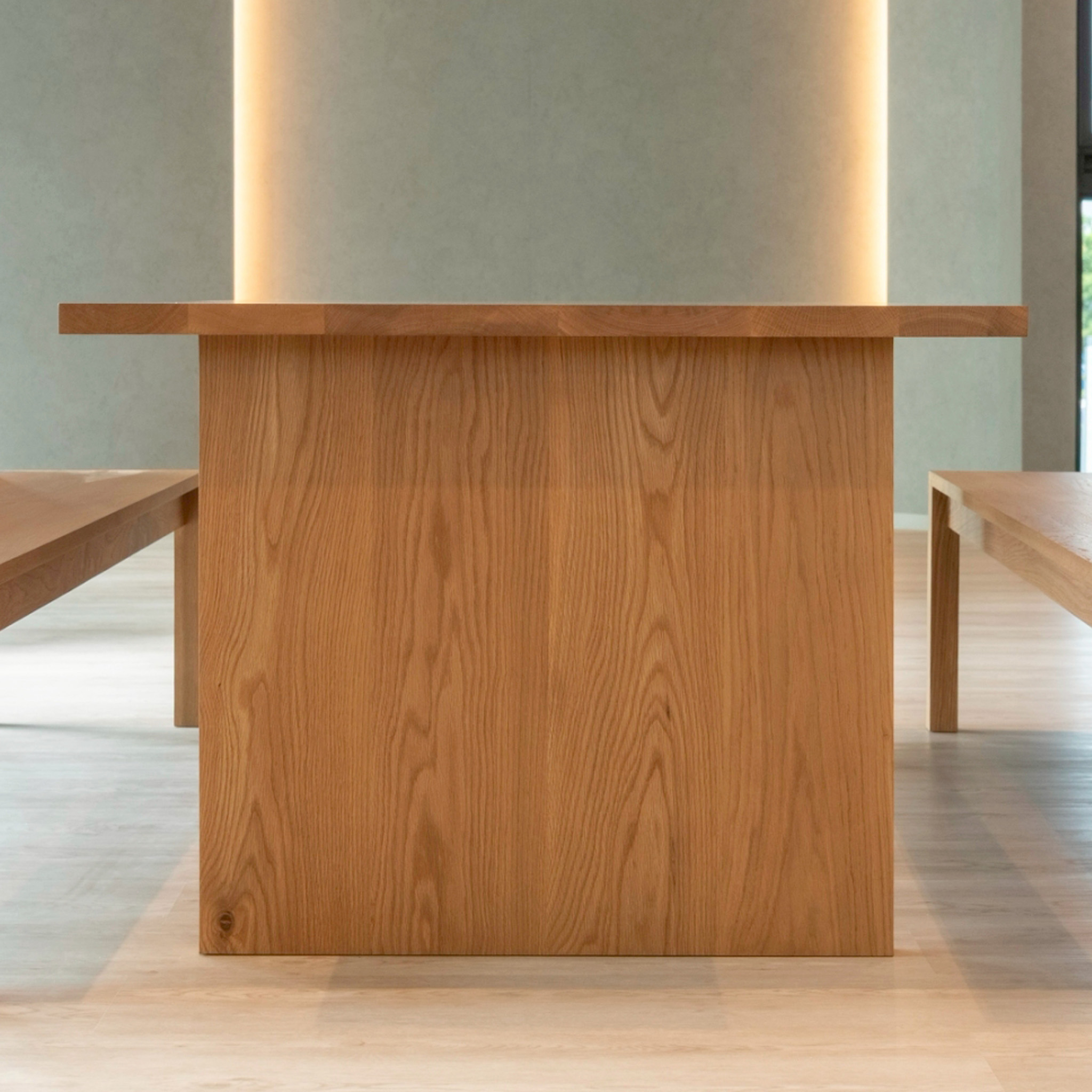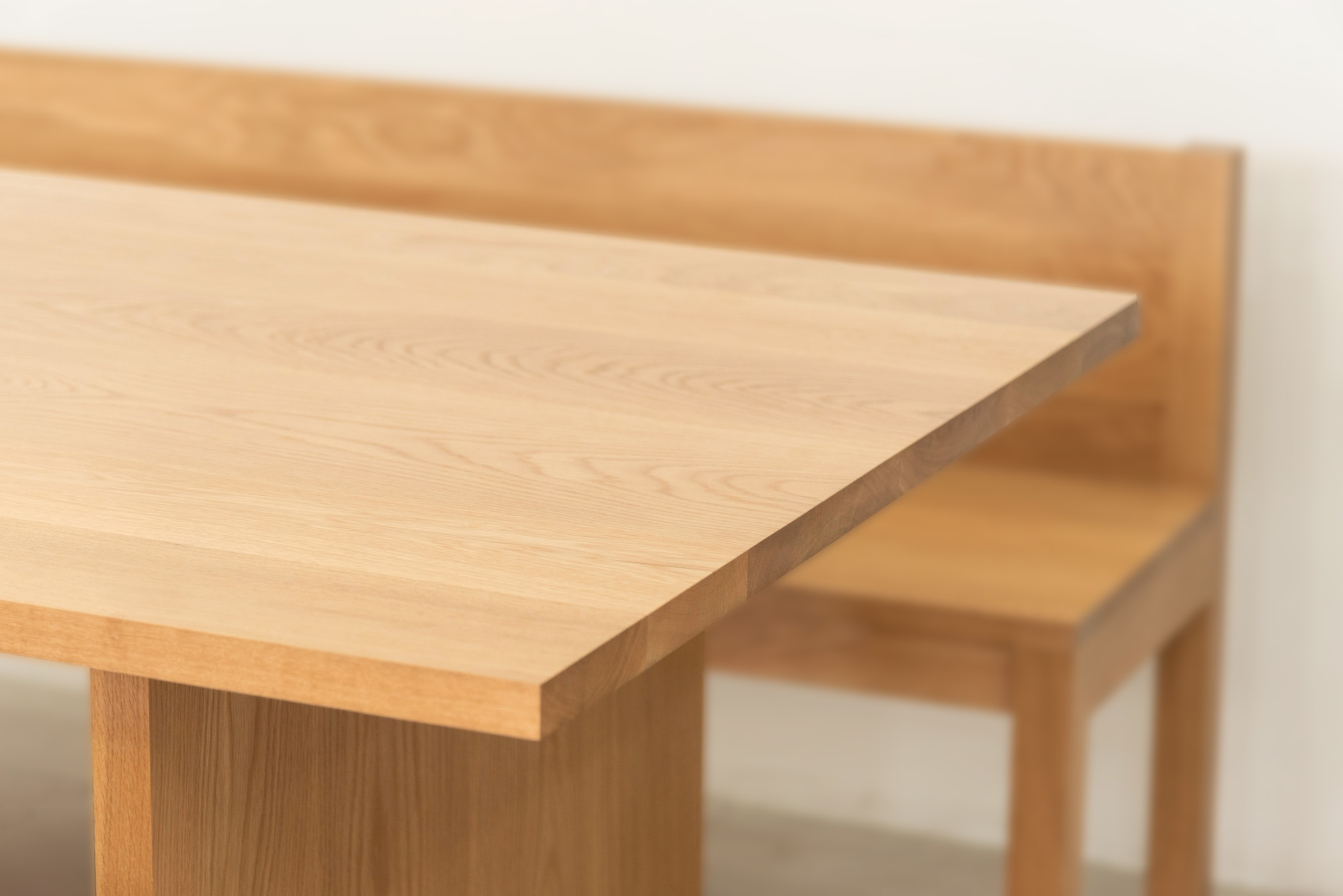 Elevate your dining experience with this exquisite dining table crafted from a single slab of premium American White Oak, carefully selected for its exceptional strength and stunning natural grain patterns. Featuring a modern, minimalist design with a warm, inviting surface, this table is perfect for homes or projects seeking high-quality furniture. Built on a sturdy frame and finished with a moisture- and scratch-resistant coating, it ensures lasting durability while maintaining its beautiful appearance. Meticulously assembled with attention to detail in every corner, this table combines functionality with timeless elegance.