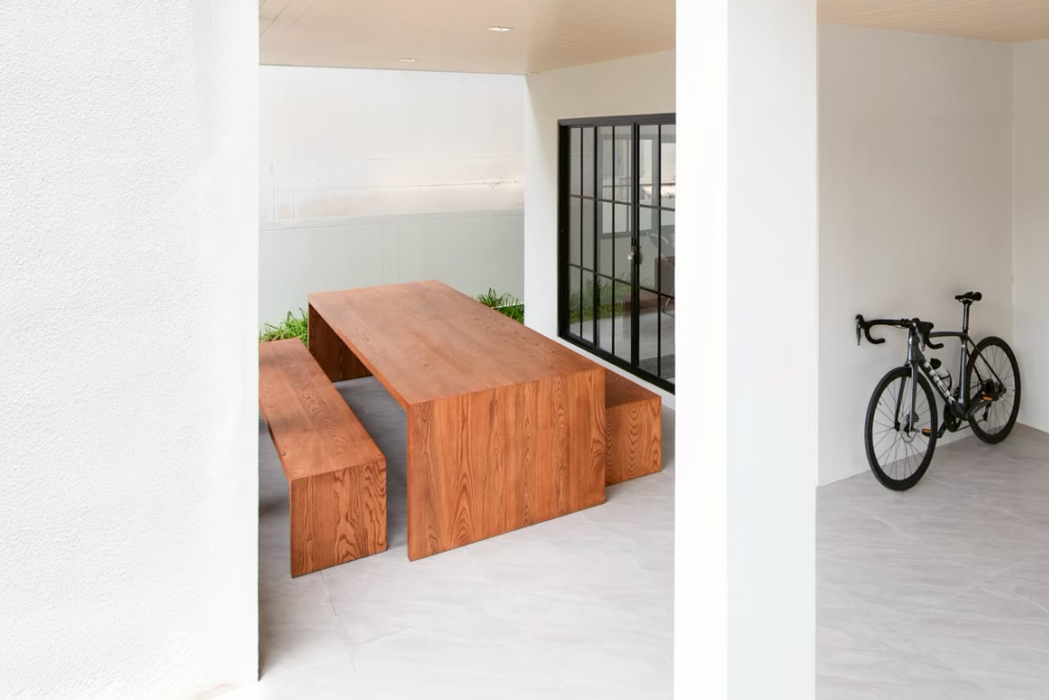 This premium wood table is crafted from genuine American White Ash, featuring a clear and beautiful natural wood grain with a uniquely warm and bright tone. Its extra-large size is designed in a minimalist style with clean lines and sharp rectangular forms, perfectly balancing elegance and sturdiness. Ideal for versatile use as a large dining table, work desk, or multipurpose table for both indoor and semi-outdoor spaces. The wood surface is finely sanded and carefully coated to provide a smooth touch, long-lasting durability, and to accentuate the natural beauty of the wood from every angle.