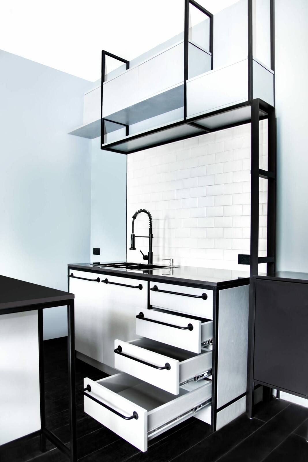 Elevate your kitchen design with our customizable options that incorporate sleek steel frames for a modern and sophisticated look. Our clever usage of black and white elements adds a touch of timeless elegance to your space. With endless possibilities to personalize your kitchen, from choosing custom finishes to selecting the perfect combination of black and white accents, you can create a kitchen that is both stylish and uniquely yours.