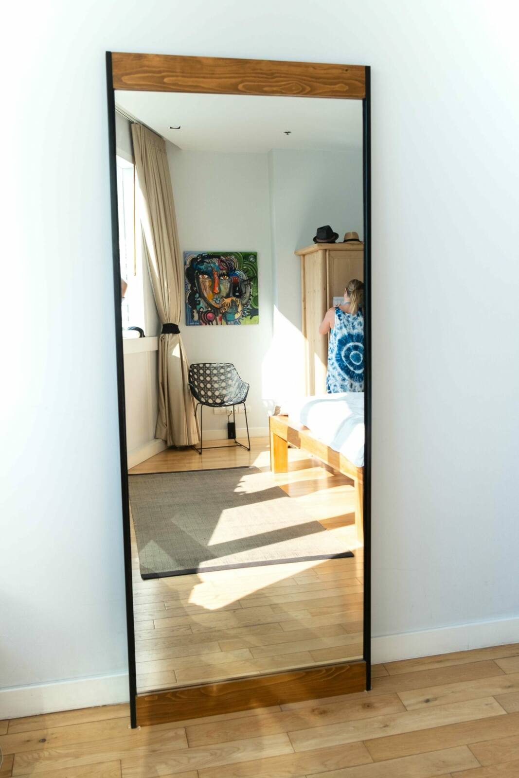 Introducing our full-length dressing mirror framed with a combination of solid wood and steel, offering a perfect harmony of elegance and durability. Crafted with American ash, this mirror can be customized in dimensions, design, wood type, and wood finish, allowing you to create a statement piece that seamlessly fits your space and reflects your personal style. Elevate your daily routine with this customizable full-length dressing mirror, designed to enhance both functionality and aesthetic appeal in any room.