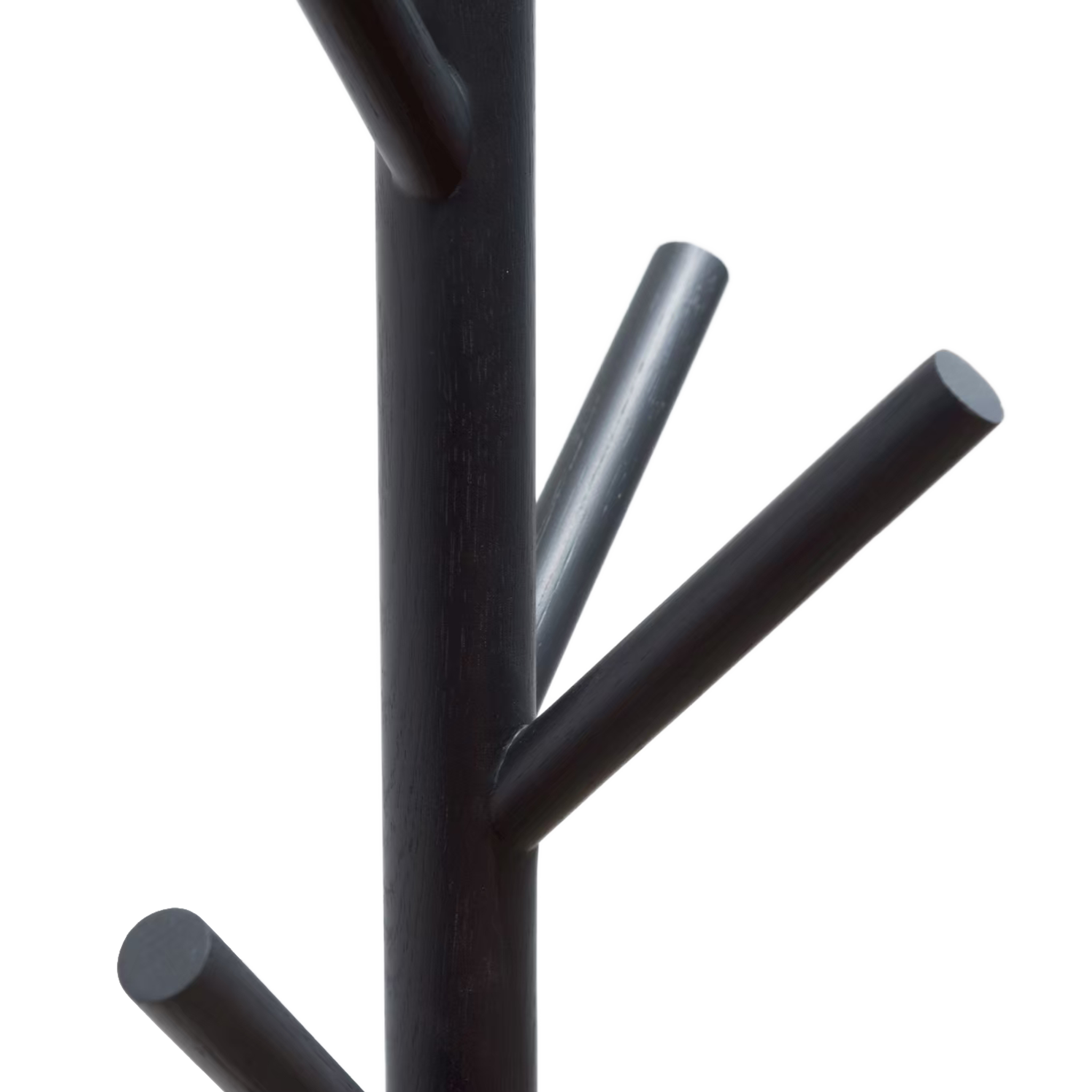 A versatile coat rack with a sleek, modern design, crafted from high-quality White Oak. Its branch-inspired lines offer a contemporary look with natural warmth, and a black polyurethane finish adds a touch of luxury while protecting the wood for easy maintenance. Sturdy construction and a stable base combine with a compact, space-saving design—ideal for hanging coats, hats, bags, and everyday items. Perfect for small corners, living rooms, bedrooms, or entryways, it brings character and stylish appeal to any space.