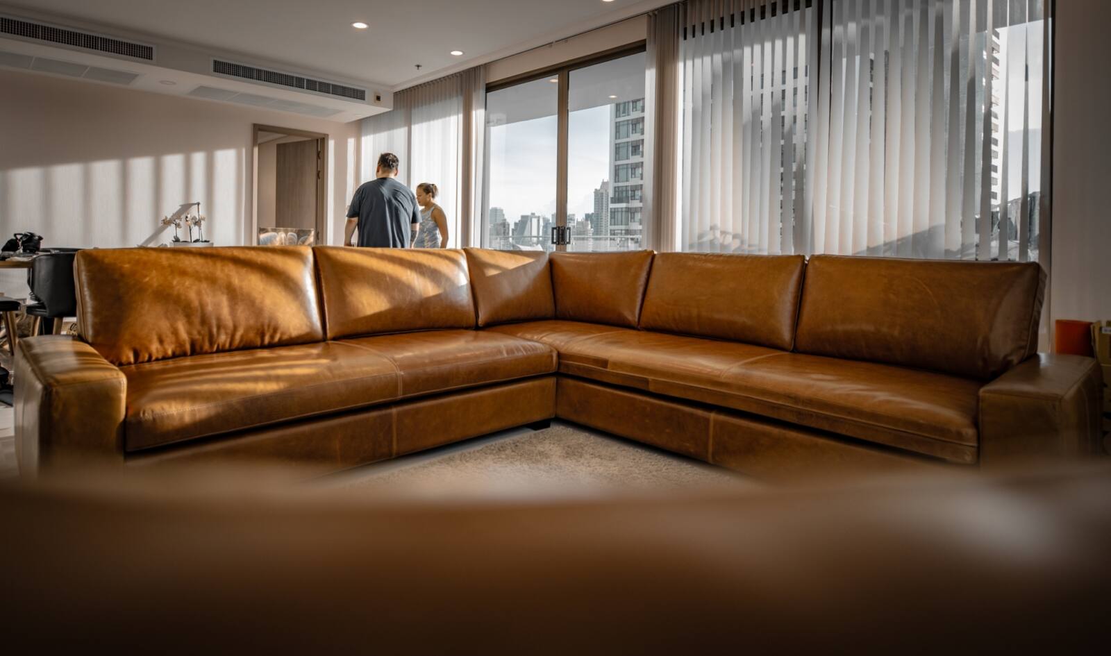 Experience luxury and sophistication with our L-shaped leather sofa, a statement piece for any modern living room. Crafted with high-quality leather, this sofa not only exudes elegance but also offers a comfortable seating experience. With customizable options for dimensions, fabric type, and color, create a bespoke sofa that perfectly suits your style and space.