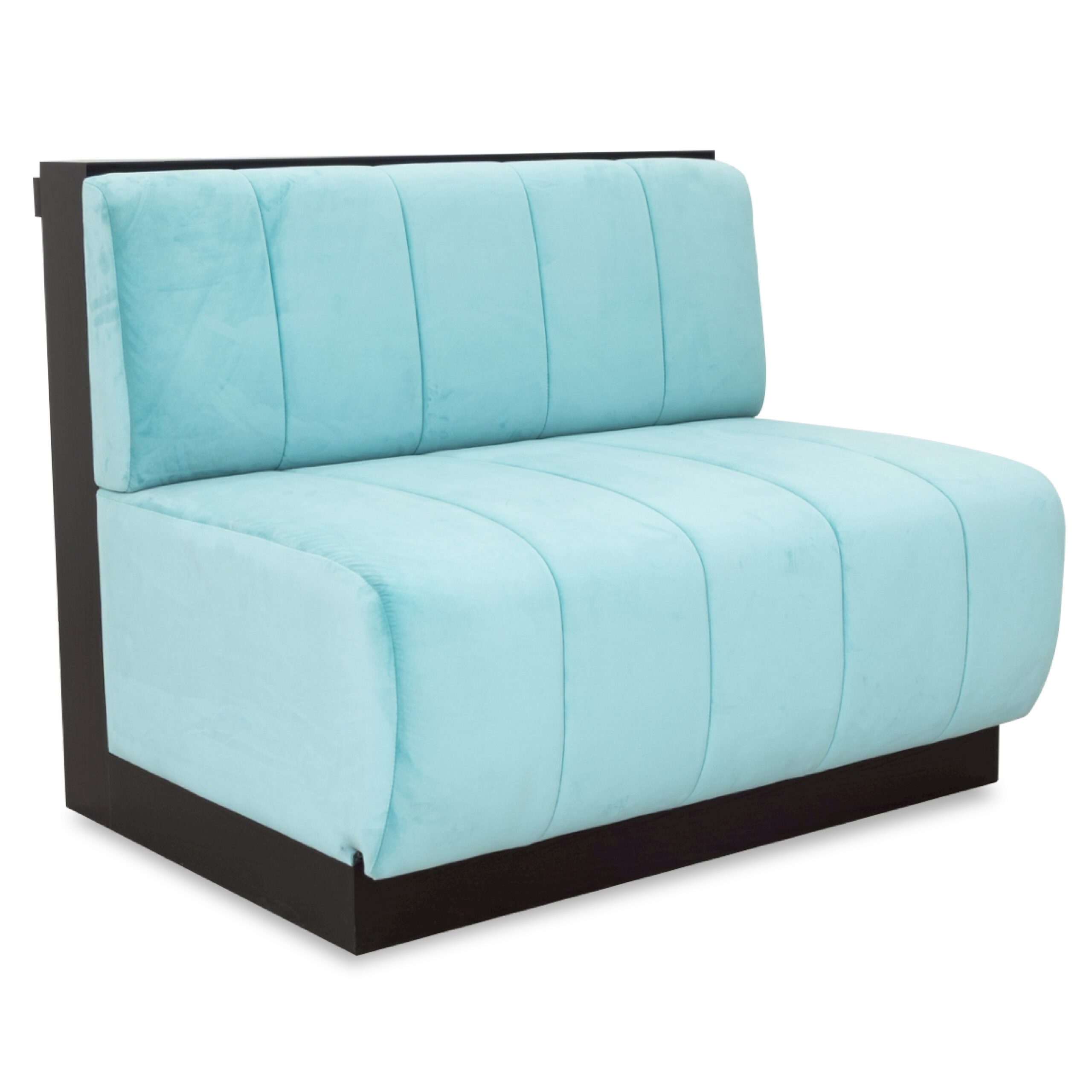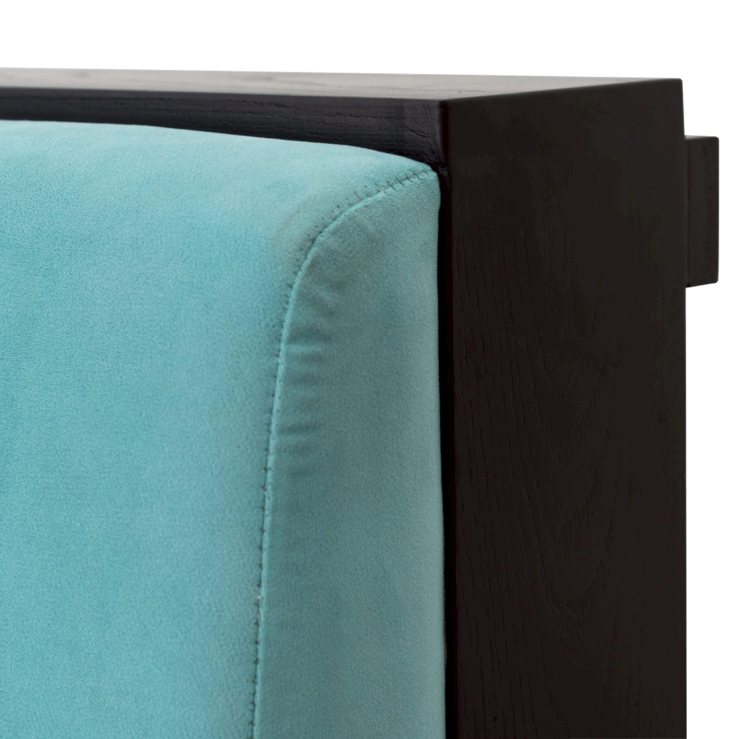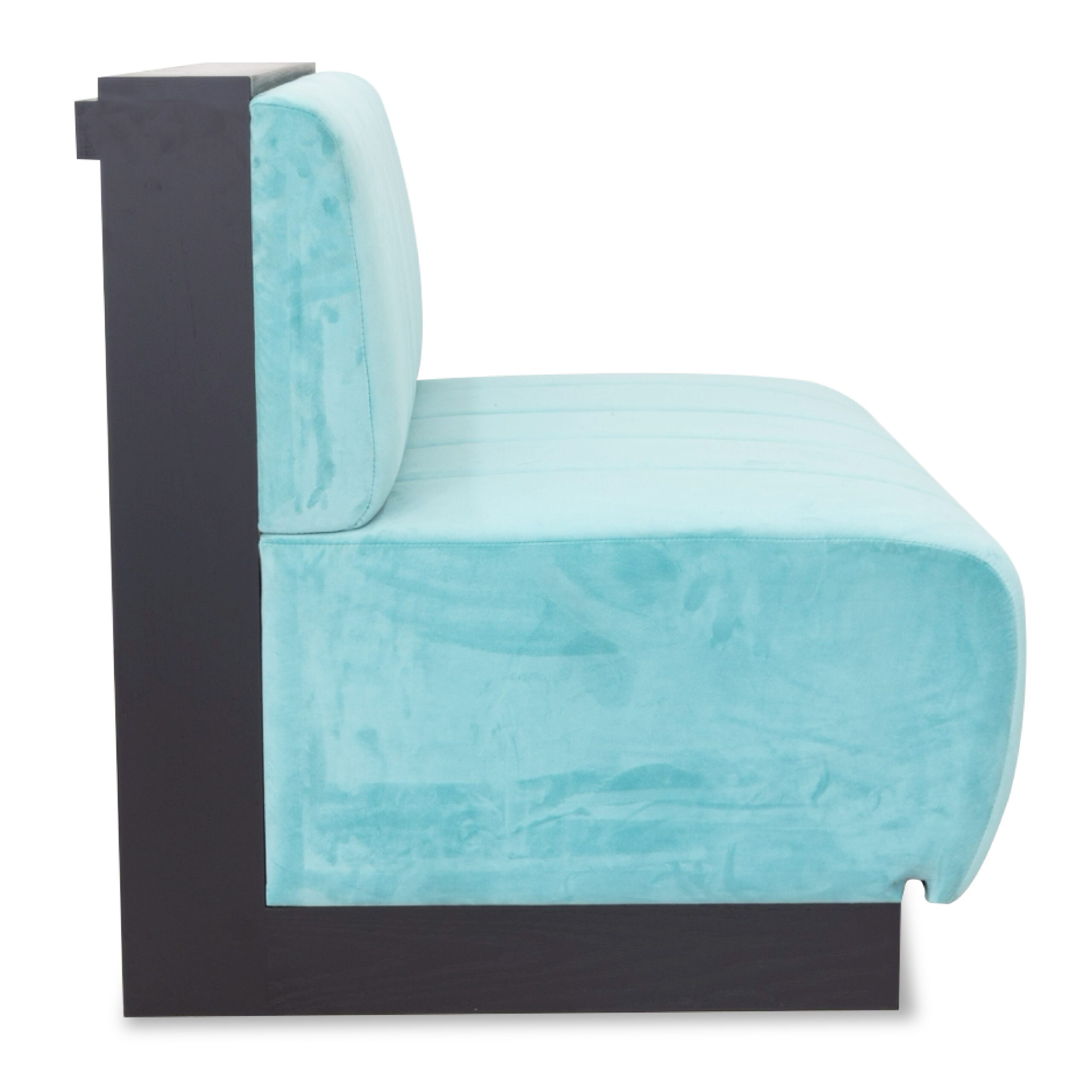 A minimalist sofa that perfectly combines plush comfort with a sturdy structure. The frame is crafted from solid American oak, offering stability, durability, and long-lasting performance. It’s upholstered with rounded, softly padded cushions covered in comfortable fabric; light tones brighten the space and create a relaxed atmosphere. Vertical seams on the cushions add subtle dimension, making the design clean but distinctive. A dark wood base provides a balanced contrast to the cushions, reflecting a composed, contemporary character. Ideal for lounges, cafés, hotels, or reception areas that require furniture that is beautiful, robust, and built for long-term use.
