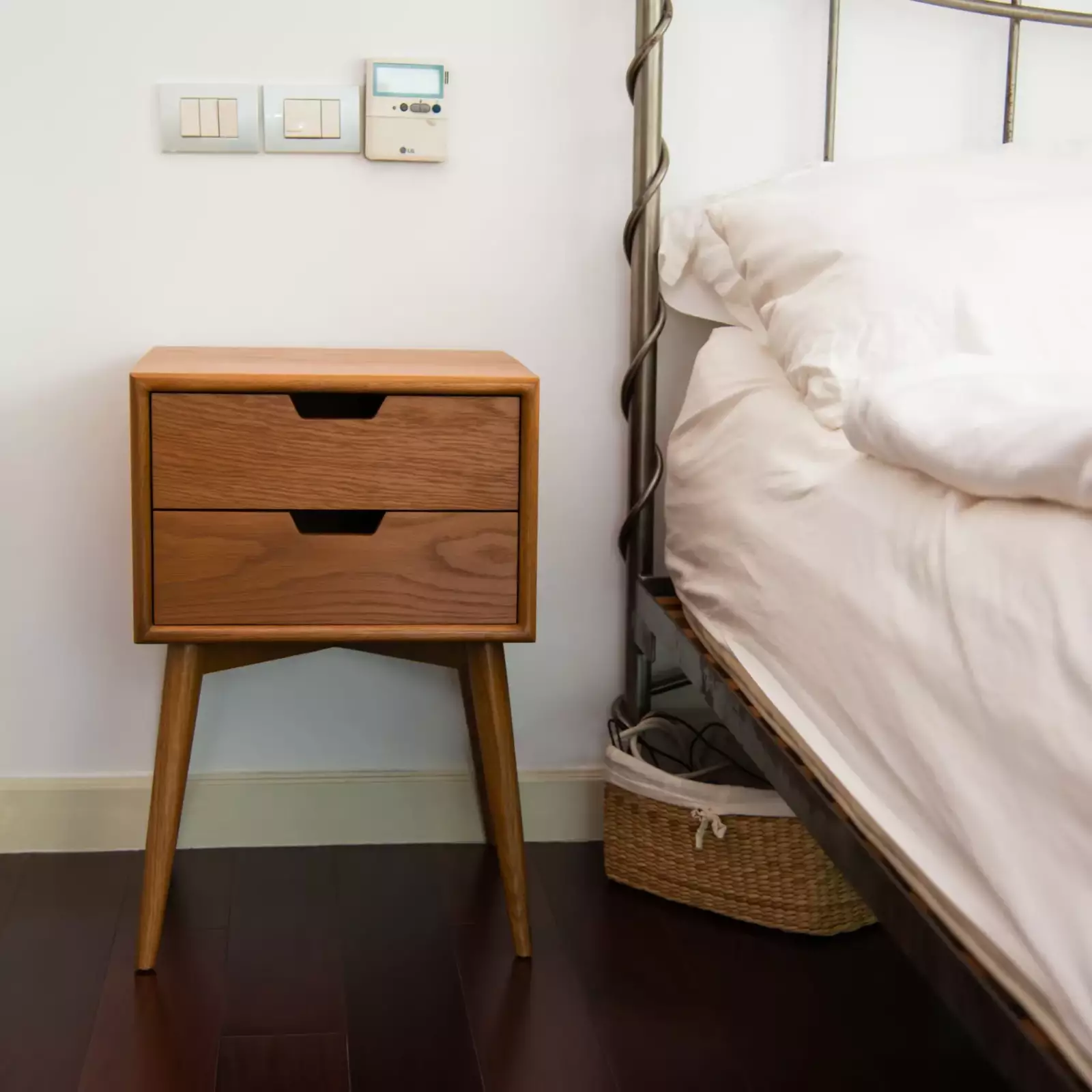 Elevate your living space with our solid wood side table, expertly crafted from American oak for a touch of timeless elegance. This versatile piece features two spacious drawers with carved-in drawer handles, providing ample storage for your belongings. With customizable design options including wood type, wood finish, and dimensions, you can create a truly personalized side table that perfectly complements your home decor.