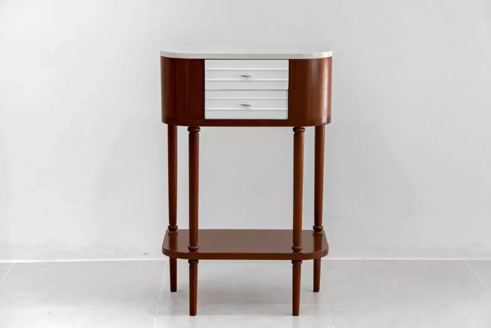 Add a touch of elegance to your home with our solid wood side table, made from premium American ash with a beautiful dark finish. Topped with a luxurious marble top, this table features drawers with a pristine white finish for a stunning contrast. With customizable options for wood type, wood finish, and dimensions, you can create a personalized side table that perfectly matches your style and complements your living space.