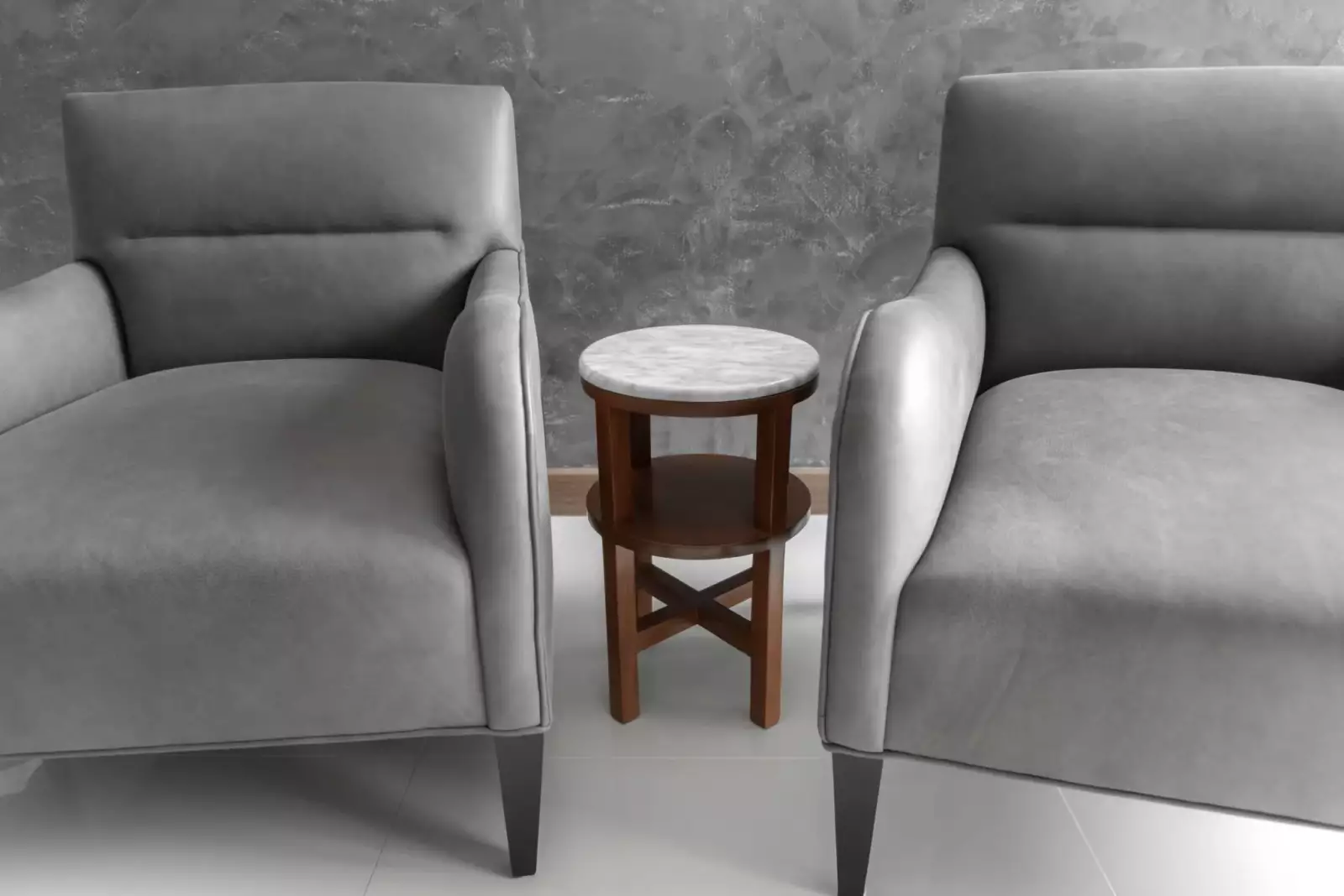 Experience sophisticated elegance with our solid wood side table featuring a stunning marble top and dark-stained American ash base. The customizable design options allow you to select the wood type, wood finish, and dimensions, creating a one-of-a-kind piece that perfectly complements your space. Elevate your interior decor with this exquisite side table that effortlessly combines the natural beauty of wood with the luxurious touch of marble.