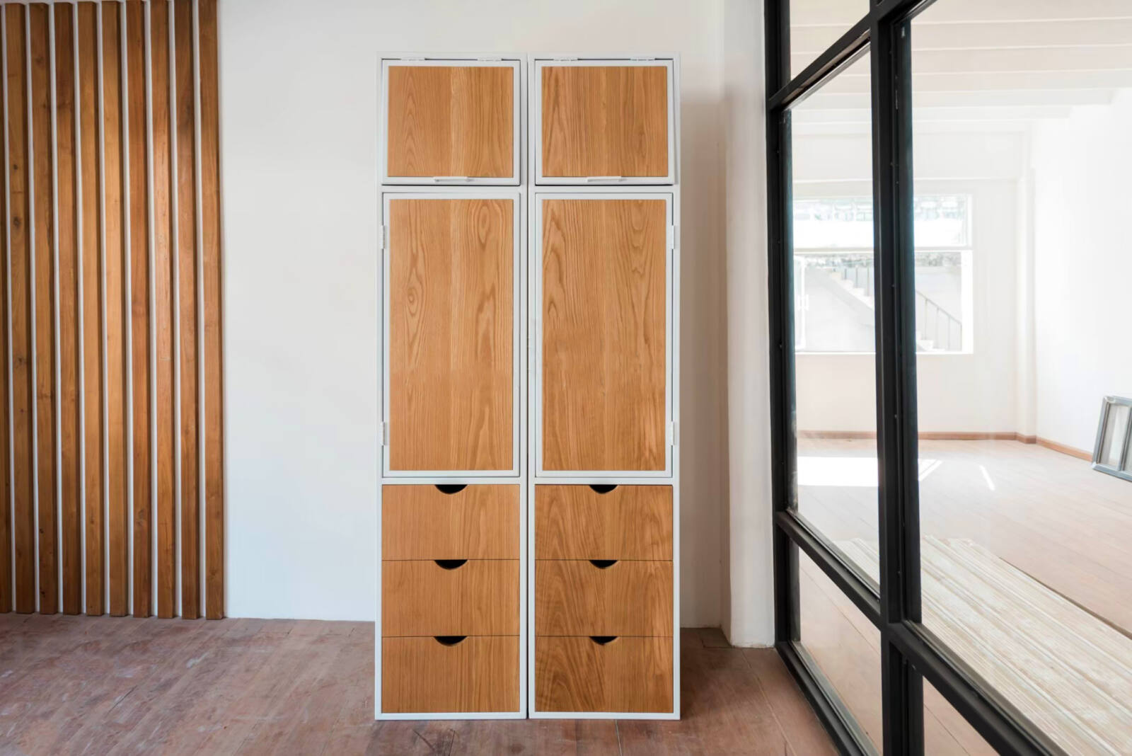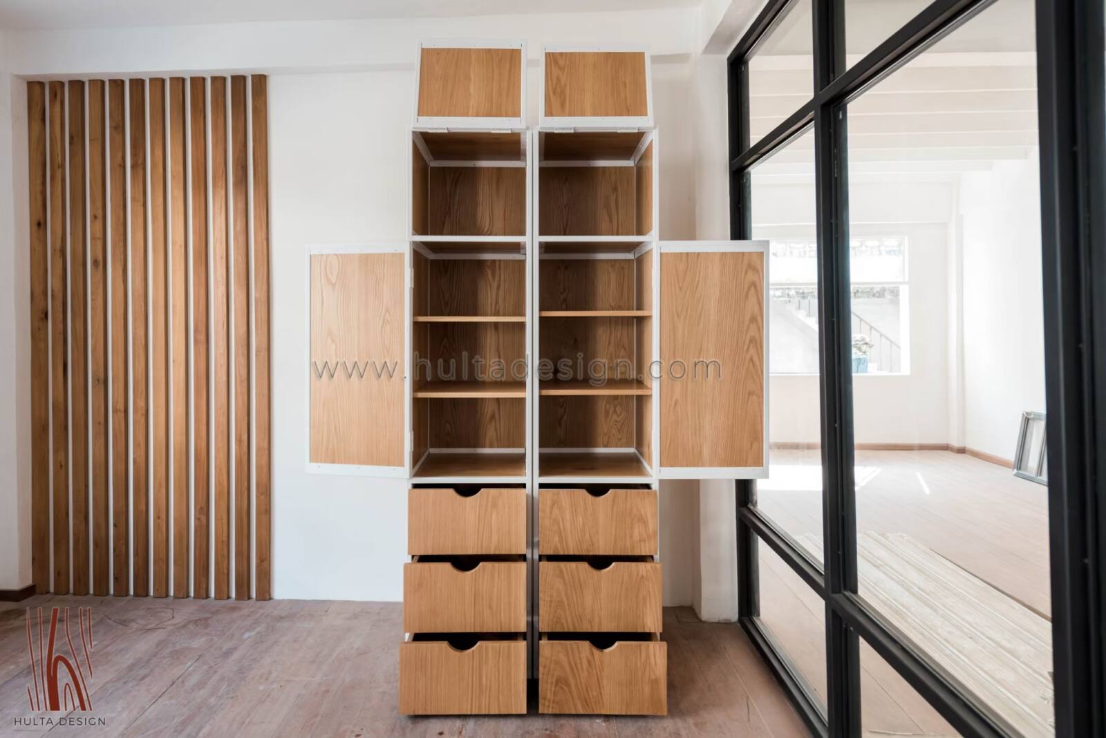Indulge in the warm elegance of American oak with our customized wardrobe. Featuring a sturdy steel frame and timeless wood finish, this wardrobe embodies class and durability. With customizable design, dimensions, colors, and wood finish options, you can create a wardrobe that is truly one of a kind and fits perfectly into your home decor.