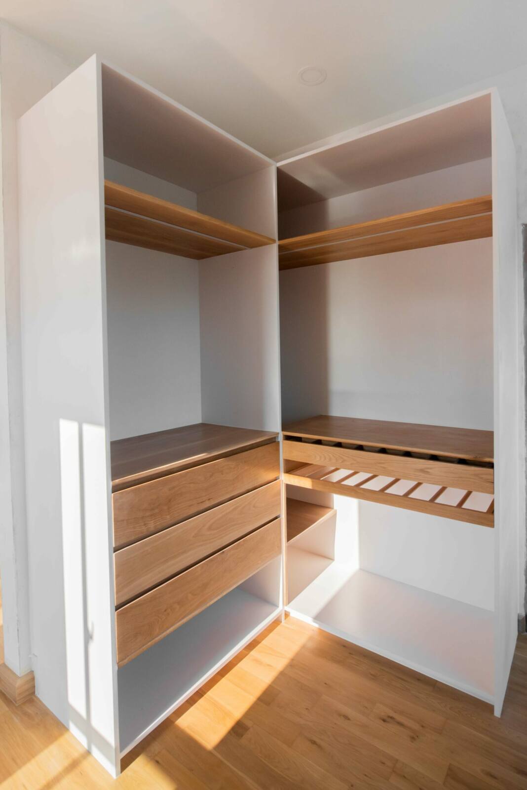 Experience the ultimate in customizable storage with our tailored wardrobe, expertly crafted using a combination of premium American oak and durable HMR materials. Featuring multiple compartments, it provides ample space to organize your belongings with ease. With customizable options for design, dimensions, wood type, and wood finish, you can create a wardrobe that not only meets your storage needs but also perfectly complements your style and elevates the aesthetics of any space.