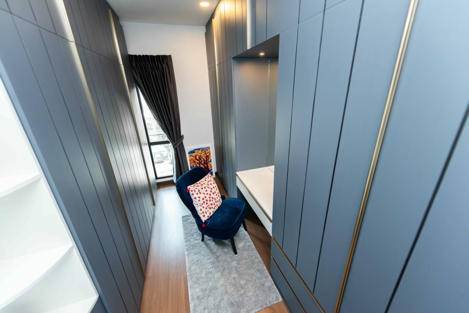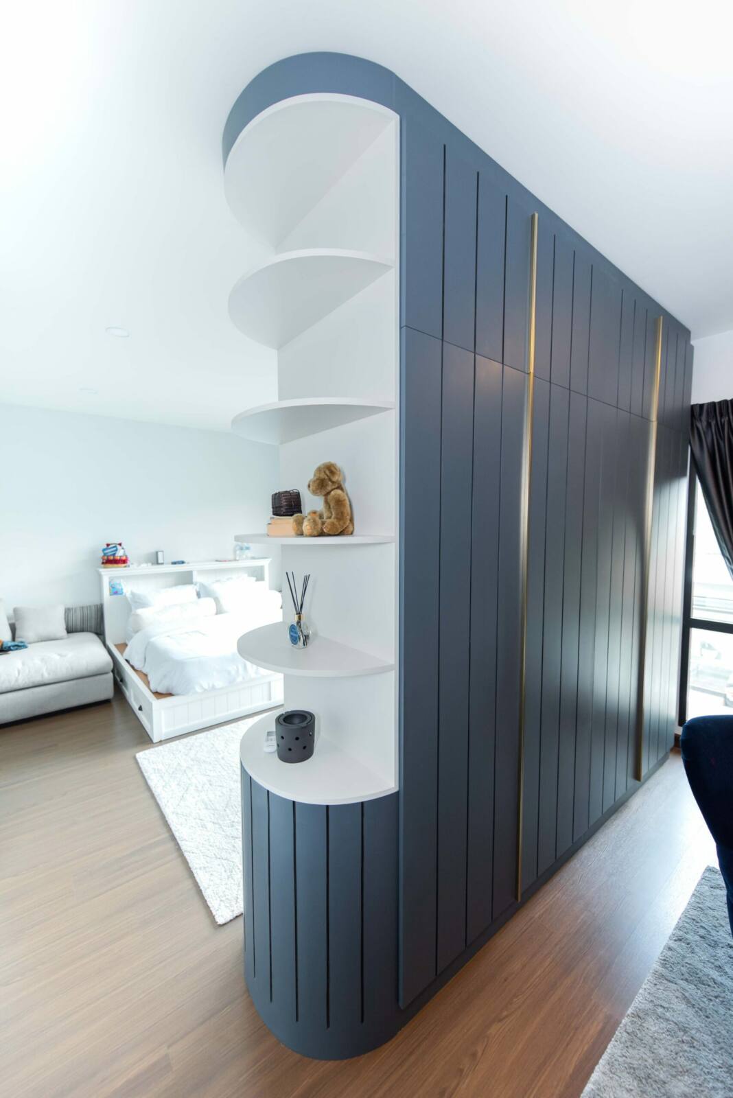Experience the extraordinary with our unique and custom-made wardrobe, a versatile two-sided furniture piece that combines functionality and style. One side serves as an entertainment console, providing a sleek space for your audiovisual equipment, while the other side is ingeniously designed as a wardrobe, offering ample storage for your clothing and accessories. With customizable options for design, dimensions, and colors, you have the freedom to create a tailor-made masterpiece that perfectly suits your needs and reflects your personal taste.