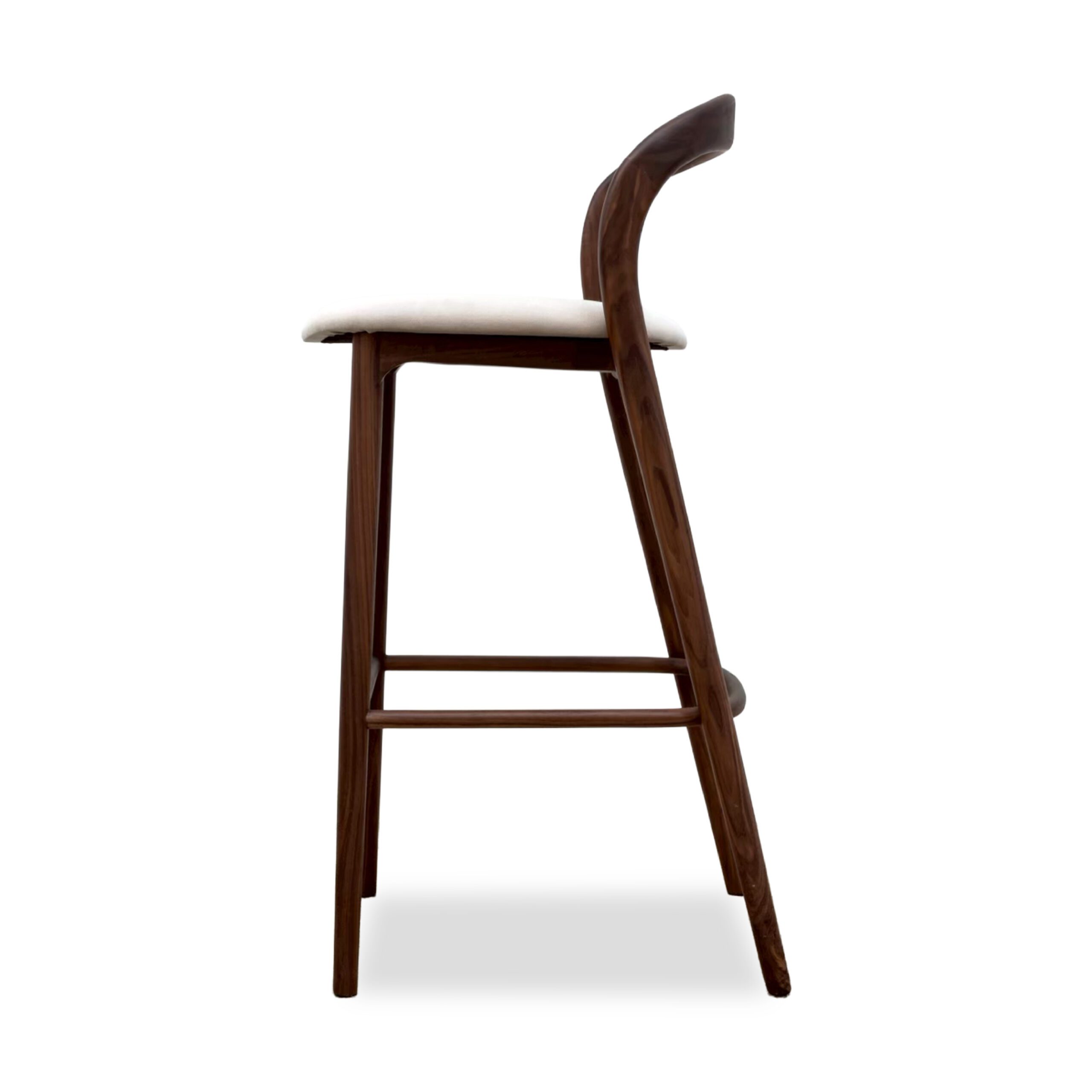 เก้าอี้บาร์ดีไซน์ร่วมสมัย ผสานความงามของไม้จริงกับสัมผัสหรูจากหนังแท้ โครงไม้เนื้อแข็งทำสีเข้มให้ความมั่นคงพร้อมเผยลายไม้ตามธรรมชาติ พนักพิงโค้งรับสรีระอย่างประณีต ให้การรองรับที่สบายในทุกท่วงท่า เบาะหนังโทนสว่างคุณภาพสูงให้ความนุ่มแน่น ทนทาน และเพิ่มความหรูแบบละมุน ดีไซน์เรียบแต่โดดเด่น เหมาะสำหรับเคาน์เตอร์บาร์ ห้องอาหาร หรือมุมพักผ่อนที่ต้องการเฟอร์นิเจอร์ที่สะท้อนรสนิยมและคุณภาพ