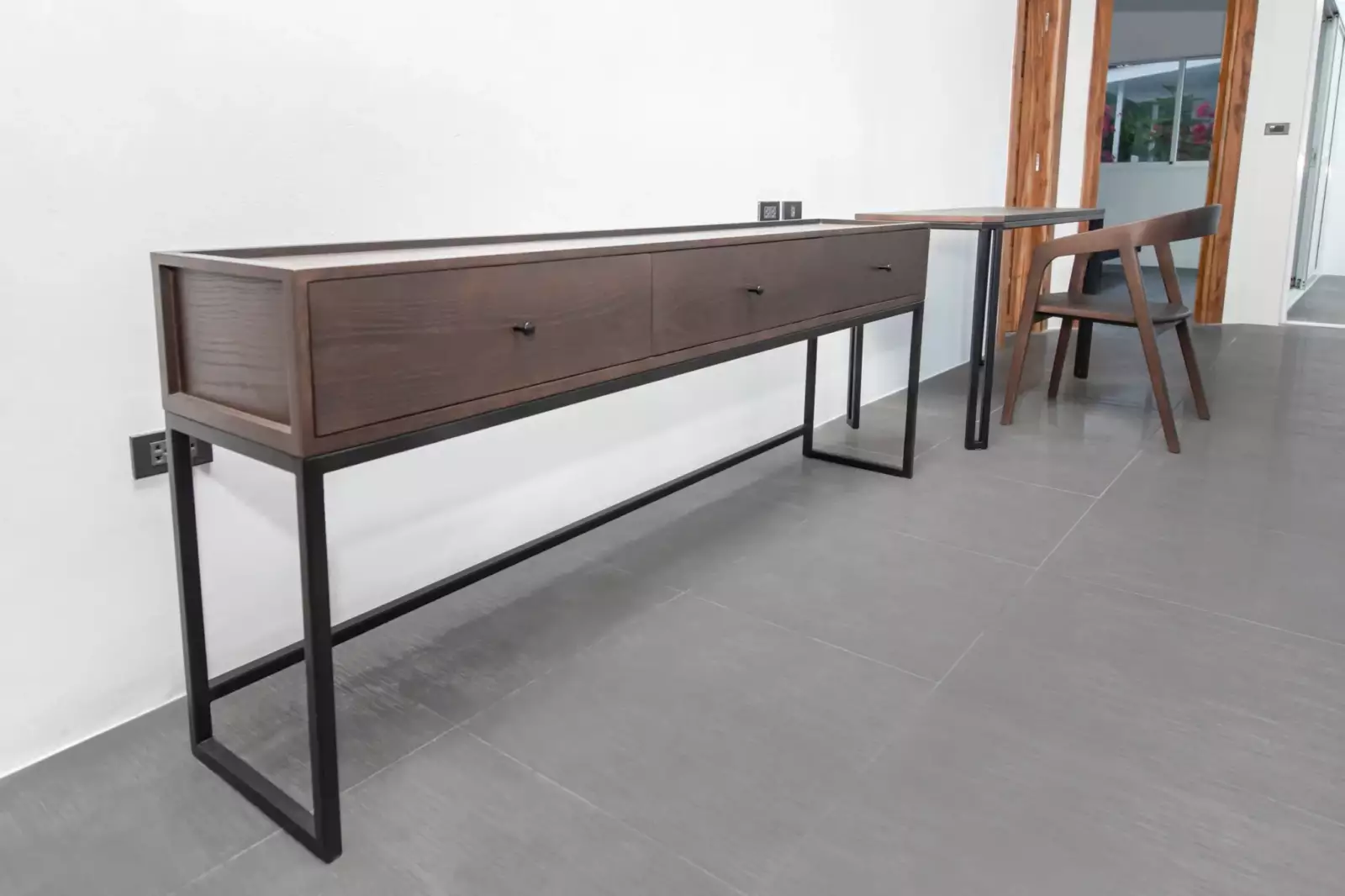 ขอแนะนำคอนโซลไม้เนื้อแข็งและเหล็กของเรา การผสมผสานระหว่างความสง่างามเหนือกาลเวลาและการออกแบบอุตสาหกรรมสมัยใหม่ ด้วยลิ้นชักขนาดใหญ่ 3 ลิ้นชัก คอนโซลนี้ผสมผสานสไตล์และฟังก์ชันการใช้งานได้อย่างง่ายดาย ทำให้มีพื้นที่เก็บของเพียงพอสำหรับสิ่งของทั้งหมดของคุณ ฐานและขาเหล็กไม่เพียงแต่เพิ่มรูปลักษณ์เพรียวบางและร่วมสมัย แต่ยังรับประกันความทนทานและความมั่นคงอีกด้วย ปรับแต่งขนาด ประเภทไม้ และสีเพื่อสร้างคอนโซลที่เติมเต็มสไตล์อันเป็นเอกลักษณ์ของคุณได้อย่างไร้ที่ติ และเพิ่มพื้นที่ในทุกพื้นที่