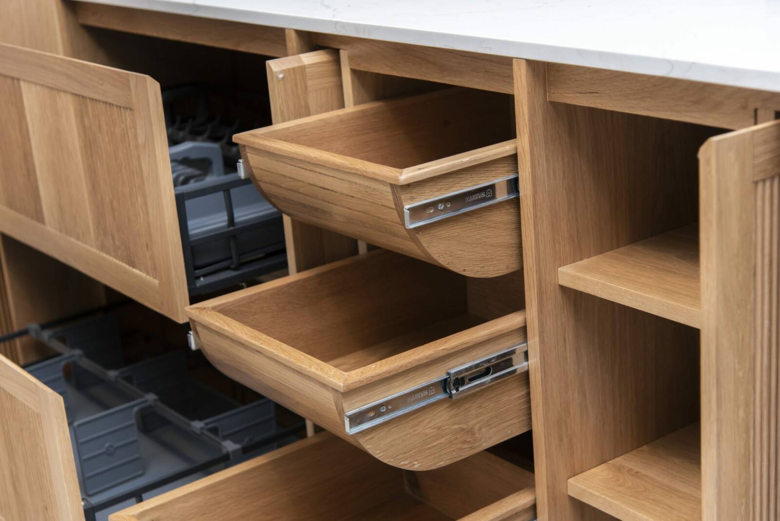 สร้างห้องครัวในฝันของคุณด้วยเคาน์เตอร์และตู้ครัวที่สวยงามของเรา ผลิตจากไม้ Solid American Oak เพื่อความสวยงามและความทนทานเหนือกาลเวลา เคาน์เตอร์ระบบควอตซ์ช่วยเพิ่มสัมผัสที่หรูหรา ในขณะที่บานตู้ระบบควอทซ์ให้ความสวยงามทันสมัยและทันสมัย ด้วยขนาด การออกแบบ และตัวเลือกการตกแต่งลายไม้ที่ปรับแต่งได้ ตู้ของเรามีทั้งฟังก์ชันการใช้งานและสไตล์ ช่วยให้คุณปรับแต่งทุกรายละเอียดให้เหมาะกับรสนิยมและความต้องการของคุณ