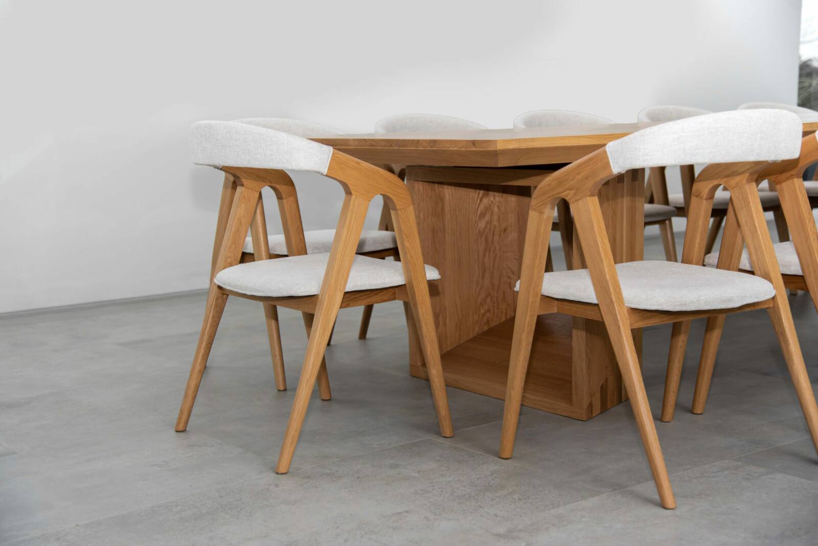 ยกระดับพื้นที่รับประทานอาหารของคุณด้วยเก้าอี้รับประทานอาหารสั่งทำพิเศษของเรา ซึ่งมีเบาะนั่งและเบาะผ้า ขาไม้โอ๊คอเมริกันทึบ ฐาน และพนักพิงแคบเพื่อความหรูหราและความสบายเป็นพิเศษ ปรับแต่งประเภทและสีของผ้า การออกแบบ ประเภทไม้ สีพื้นผิวไม้ และขนาด เพื่อสร้างเก้าอี้รับประทานอาหารที่สะท้อนสไตล์ที่เป็นเอกลักษณ์ของคุณและเข้ากับพื้นที่ของคุณได้อย่างลงตัว ไม่ว่าจะให้ความบันเทิงแก่แขกหรือเพลิดเพลินกับมื้ออาหารกับครอบครัว เก้าอี้ตัวนี้รับประกันประสบการณ์การรับประทานอาหารที่สะดวกสบายและมีสไตล์
