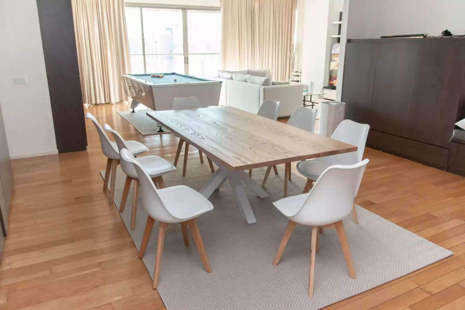 สัมผัสประสบการณ์การผสมผสานอย่างลงตัวของความซับซ้อนและความทนทานด้วยโต๊ะรับประทานอาหารไม้เนื้อแข็งของเรา พื้นไม้จามจุรีเพิ่มสัมผัสแห่งความหรูหราและมีเสน่ห์ ในขณะที่ฐานและขาเหล็กให้การรองรับที่แข็งแกร่งและรูปลักษณ์ร่วมสมัย ด้วยตัวเลือกที่ปรับแต่งได้สำหรับการออกแบบ ประเภทไม้ พื้นผิวไม้ สีเหล็กเคลือบผง และขนาด คุณสามารถสร้างโต๊ะรับประทานอาหารส่วนตัวที่ช่วยเพิ่มพื้นที่ของคุณได้อย่างง่ายดาย และสะท้อนถึงสไตล์และรสนิยมที่เป็นเอกลักษณ์ของคุณ