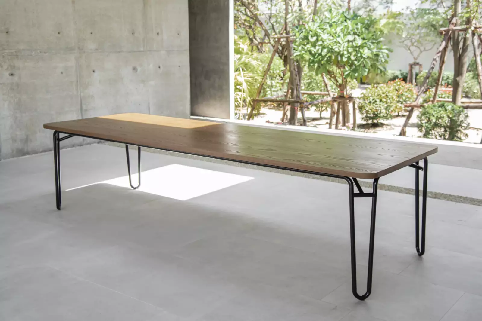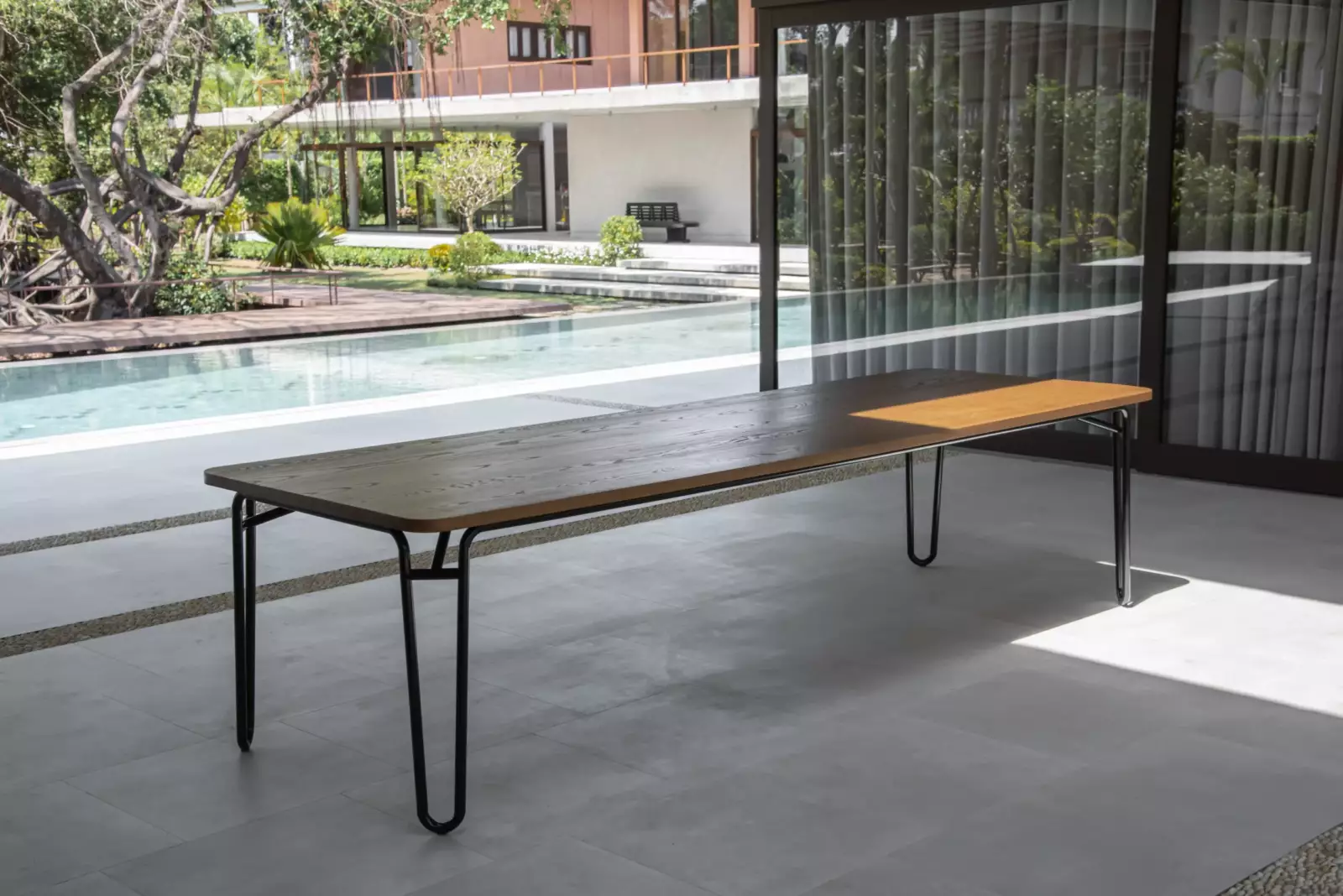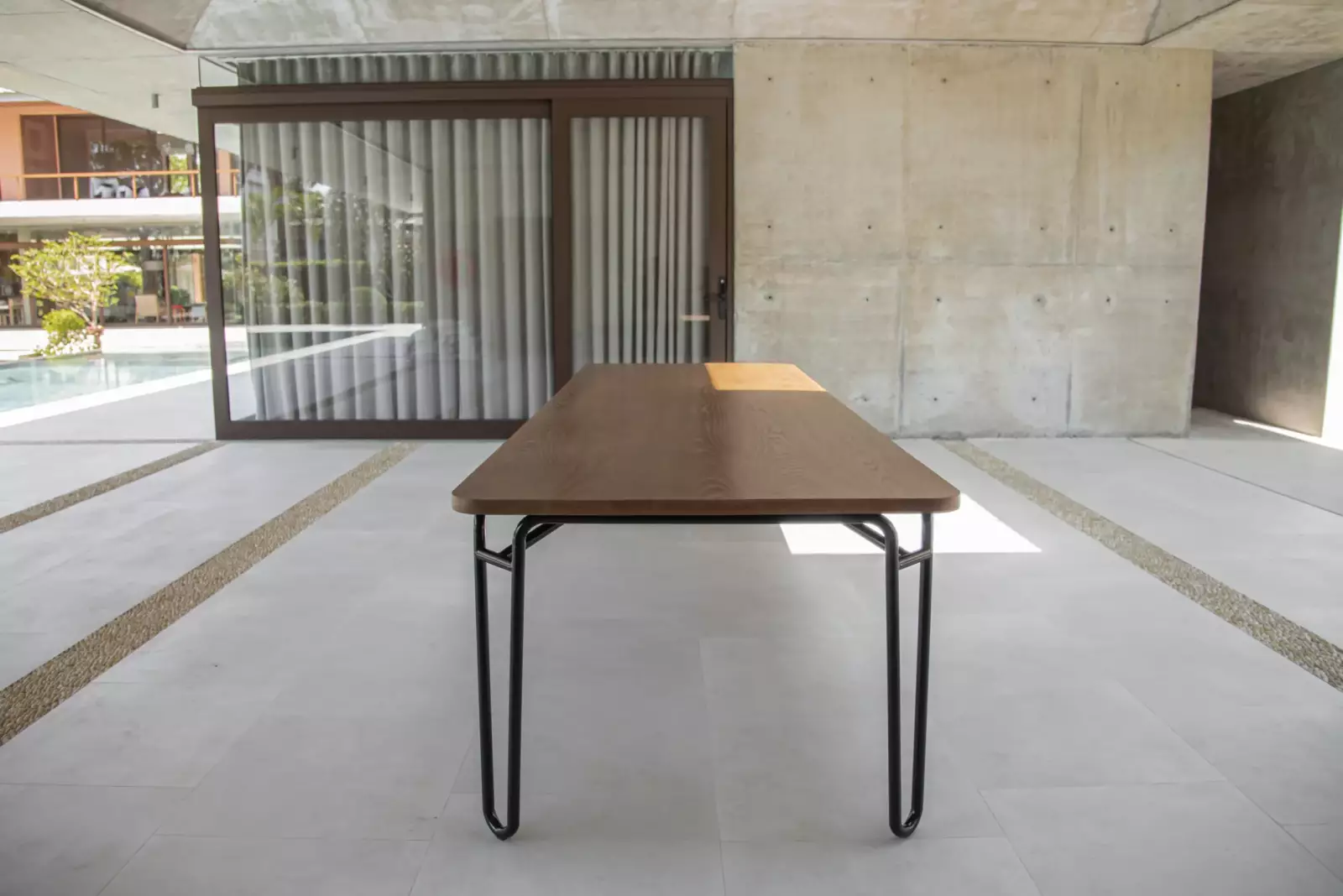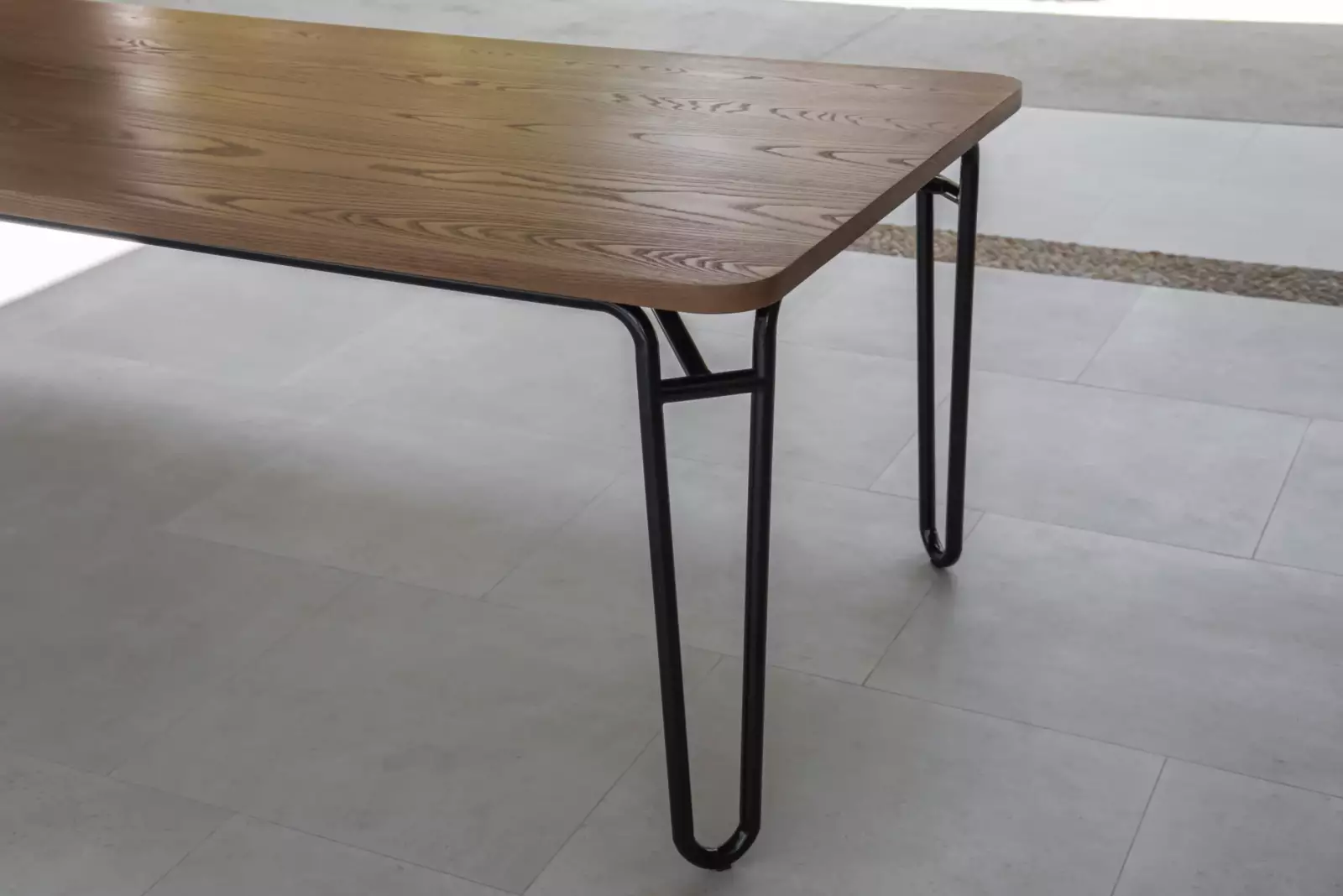 Elevate your dining experience either indoors and outdoors with our exceptional solid wood and steel dining table. The American ash table top provides a timeless and elegant look, while the steel base and legs offer durability and a modern touch. With customizable options for design, including wood type, wood finish, powder-coated steel colors, and dimensions, you can create a versatile and personalized dining table that effortlessly complements any space, making every meal a stylish and enjoyable occasion.