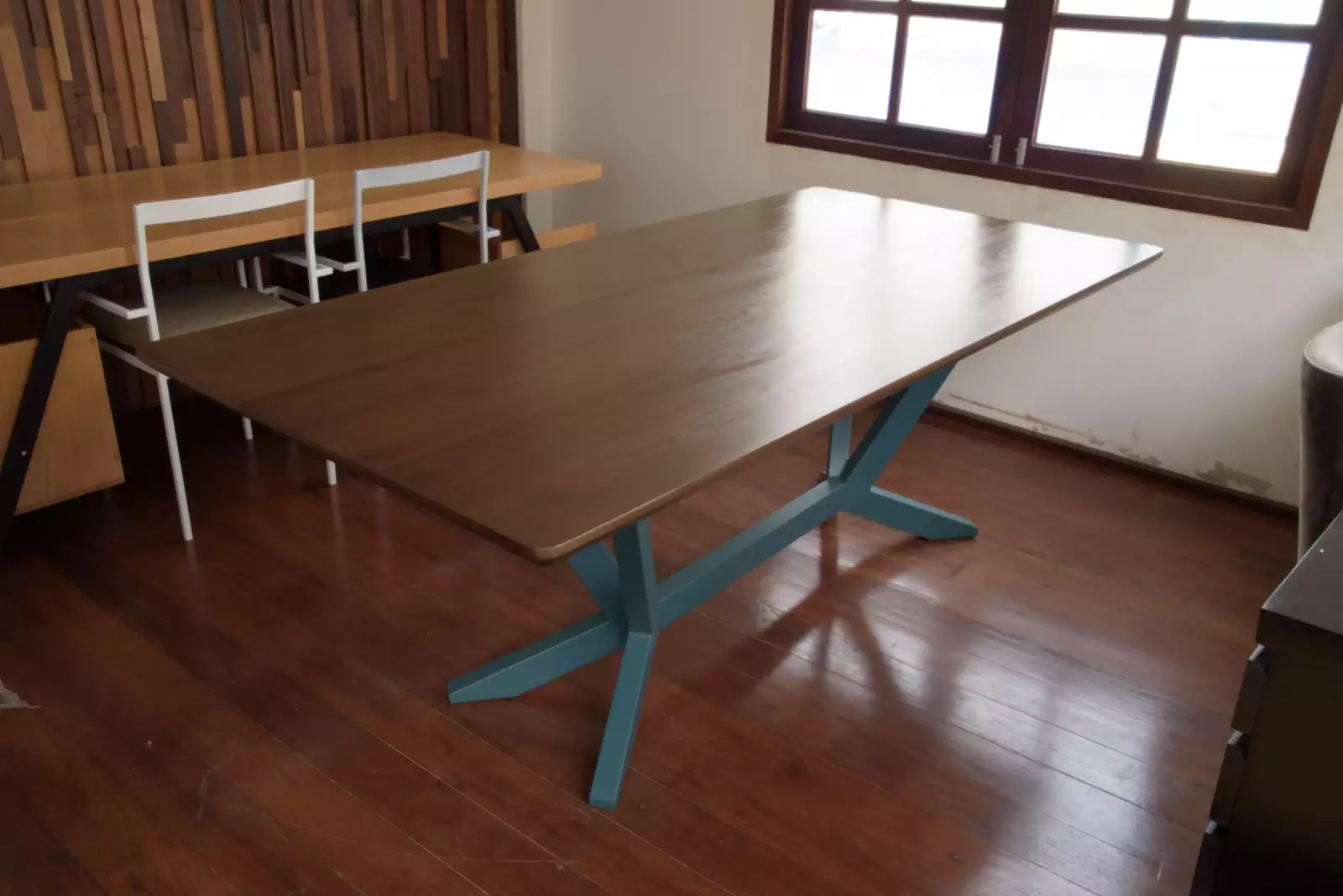 ขอแนะนำโต๊ะรับประทานอาหารไม้เนื้อแข็งของเรา ซึ่งมีโต๊ะไม้แอชอเมริกันที่ประดิษฐ์อย่างสวยงาม ซึ่งเพิ่มความหรูหราตามธรรมชาติให้กับพื้นที่รับประทานอาหาร สิ่งที่ทำให้โต๊ะนี้แตกต่างคือขาและฐานเคลือบผงสีฟ้าอันเป็นเอกลักษณ์ ทำให้เกิดความแตกต่างที่โดดเด่นซึ่งเพิ่มความทันสมัยและมีชีวิตชีวาให้กับการออกแบบโดยรวม ด้วยตัวเลือกที่ปรับแต่งได้สำหรับการออกแบบ ประเภทไม้ พื้นผิวไม้ และขนาด คุณสามารถสร้างโต๊ะอาหารที่สะท้อนถึงสไตล์ส่วนตัวของคุณ สร้างจุดศูนย์กลางที่น่าดึงดูดและไม่เหมือนใครอย่างแท้จริงสำหรับพื้นที่รับประทานอาหารของคุณ