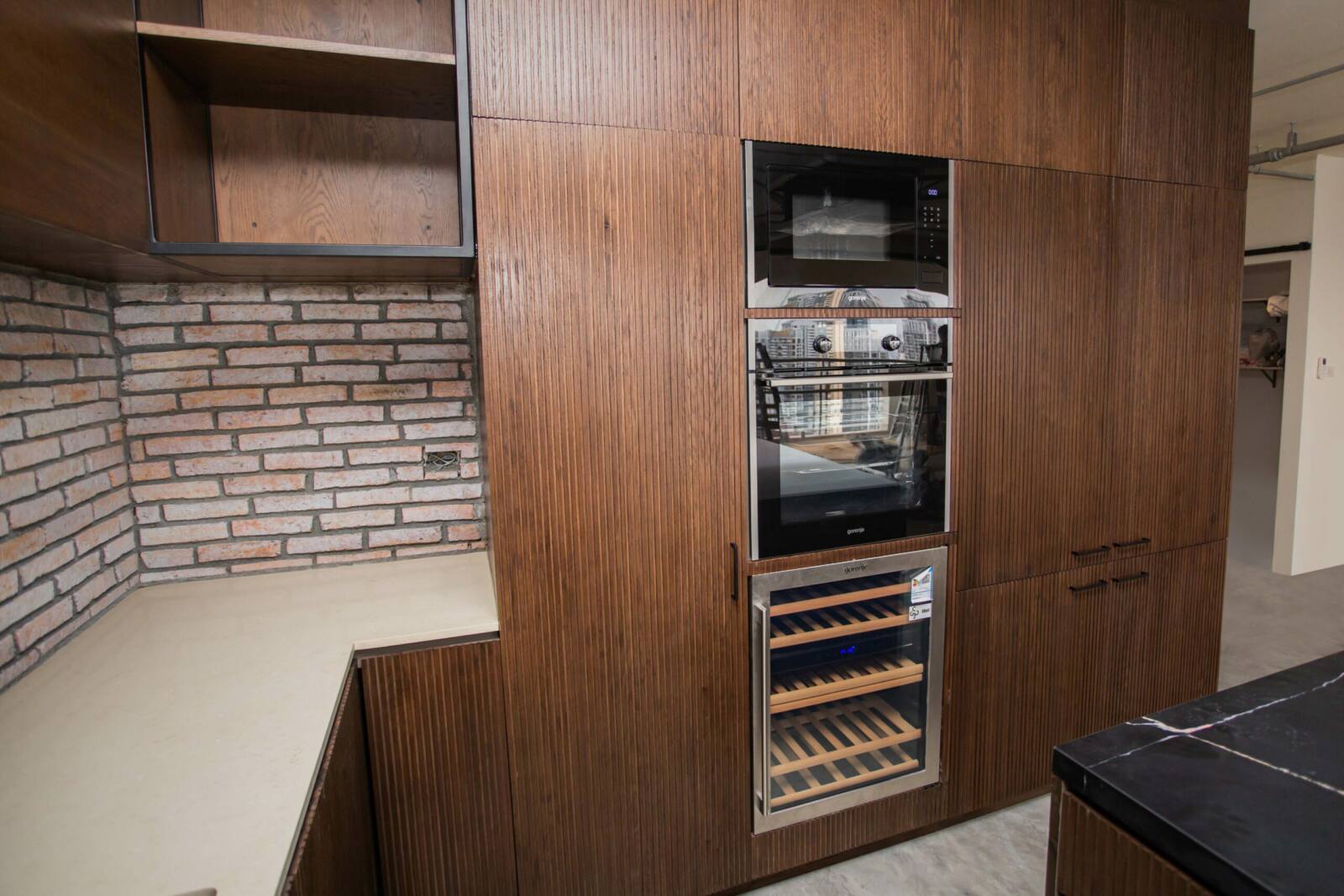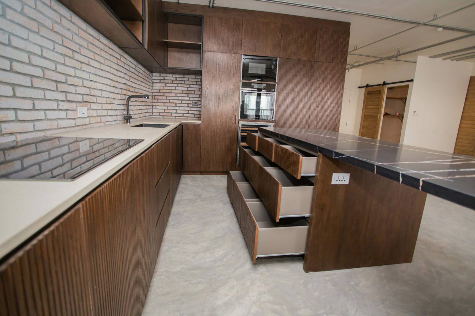 สร้างห้องครัวที่ปรับแต่งได้อย่างแท้จริงซึ่งสะท้อนถึงสไตล์ที่เป็นเอกลักษณ์ของคุณด้วยตัวเลือกที่หลากหลายของเรา ผสมผสานความงามเหนือกาลเวลาของลิ้นชักและชั้นวางของไม้โอ๊คเนื้อตันที่นำความอบอุ่นและความทนทานมาสู่พื้นที่ของคุณ สร้างความโดดเด่นด้วยพื้นหลังอิฐอันเป็นเอกลักษณ์ ในขณะที่เคาน์เตอร์ควอทซ์สีขาวสวยงามช่วยเพิ่มสัมผัสแห่งความสง่างาม เติมเต็มลุคด้วยท็อปเคาน์เตอร์หินมาคิวน่าสีดำ เพิ่มความหรูหราและซับซ้อนที่จะสร้างความประทับใจให้แขกและยกระดับการออกแบบห้องครัวของคุณ