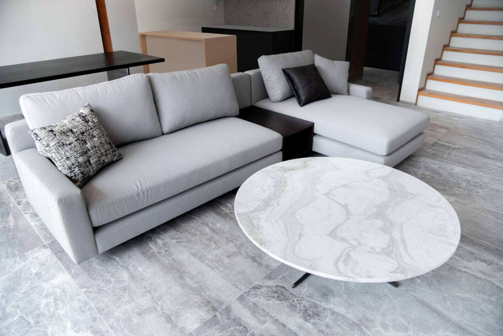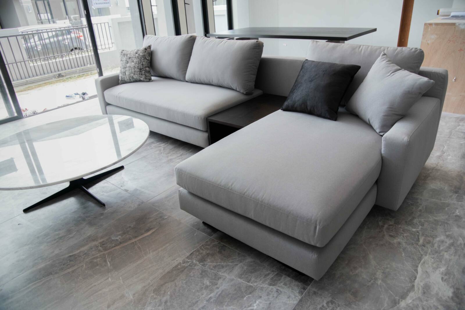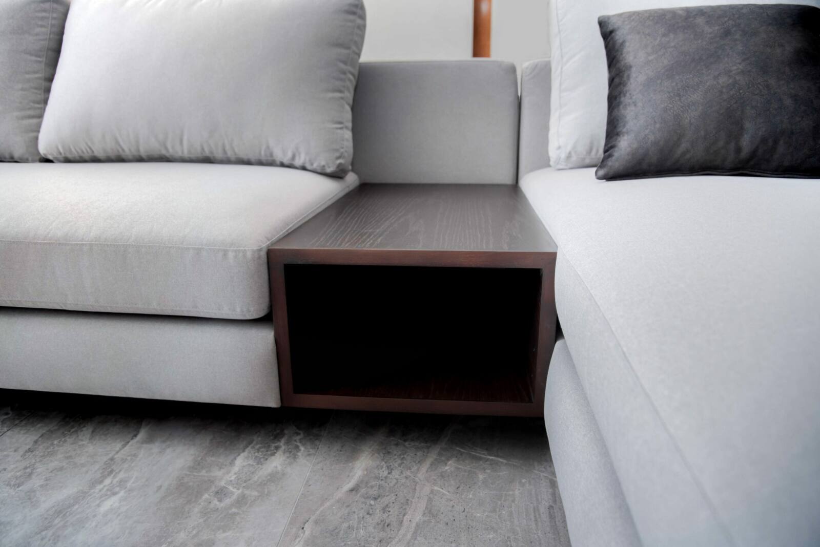 Elevate your living room with our L-shaped sofa, featuring a built-in cabinet cubby space for convenient storage of essentials like magazines, remote controls, and more. Sink into the luxurious comfort of cushioned fabric, creating the perfect spot for relaxation and lounging. With customizable options for dimensions, fabric type, and color, create a personalized sofa that effortlessly combines functionality, style, and comfort to suit your unique preferences and needs.