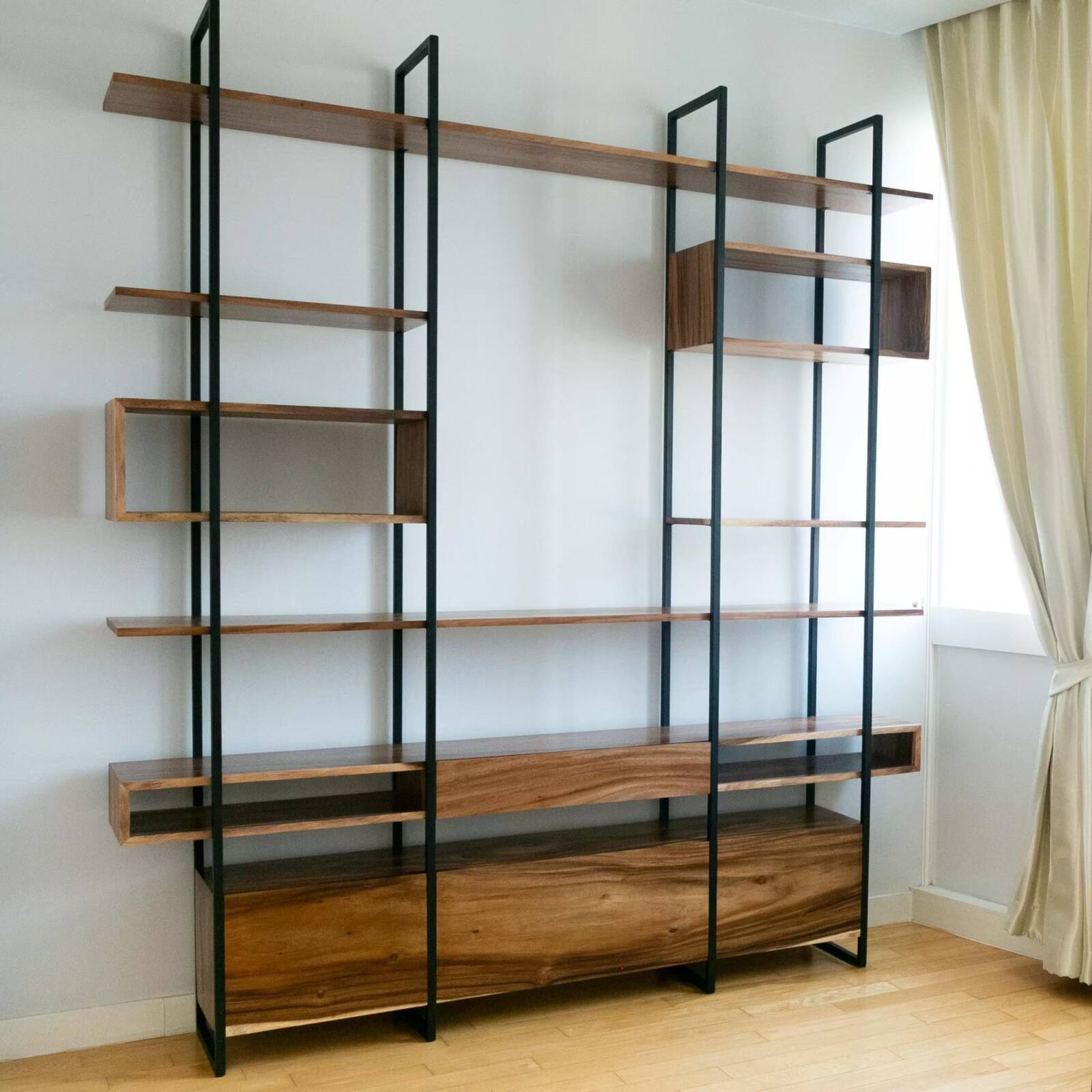 นำเสนอการผสมผสานระหว่างความสง่างามและความทันสมัยด้วยชั้นวางของที่โดดเด่นของเราซึ่งสร้างจากไม้แอชอเมริกันเนื้อแข็ง เสริมด้วยฐานและขาเหล็กที่แข็งแรง ด้วยตัวเลือกการออกแบบที่ปรับแต่งได้ คุณมีอิสระในการสร้างชั้นวางที่ตรงกับสไตล์และความชอบส่วนตัวของคุณได้อย่างสมบูรณ์แบบ เลือกประเภทไม้ พื้นผิวไม้ และขนาดต่างๆ เพื่อสร้างโซลูชันการจัดเก็บที่มีเอกลักษณ์และใช้งานได้จริง ซึ่งช่วยเพิ่มพื้นที่ในบ้านของคุณได้อย่างง่ายดาย