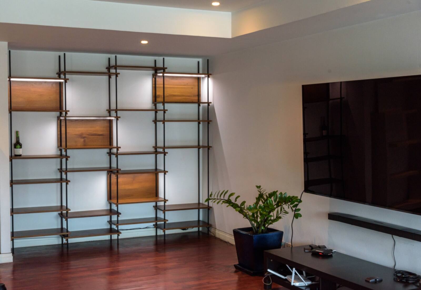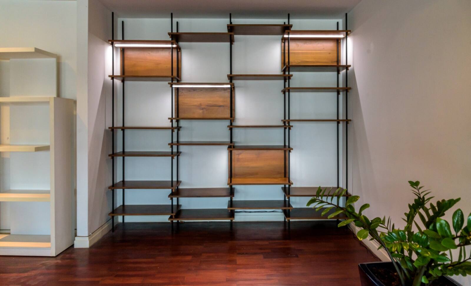 Embrace the charm of reclaimed teak with our stunning shelf unit, featuring a distinctive steel cylindrical base and legs that add a touch of modern industrial style. The unique rustic teak stabilizers not only enhance the visual appeal but also provide sturdy support for your displayed items. With a customizable design, you have the freedom to choose the wood type, wood finish, and dimensions, allowing you to create a truly personalized shelf unit that exudes character and fits perfectly into your space.