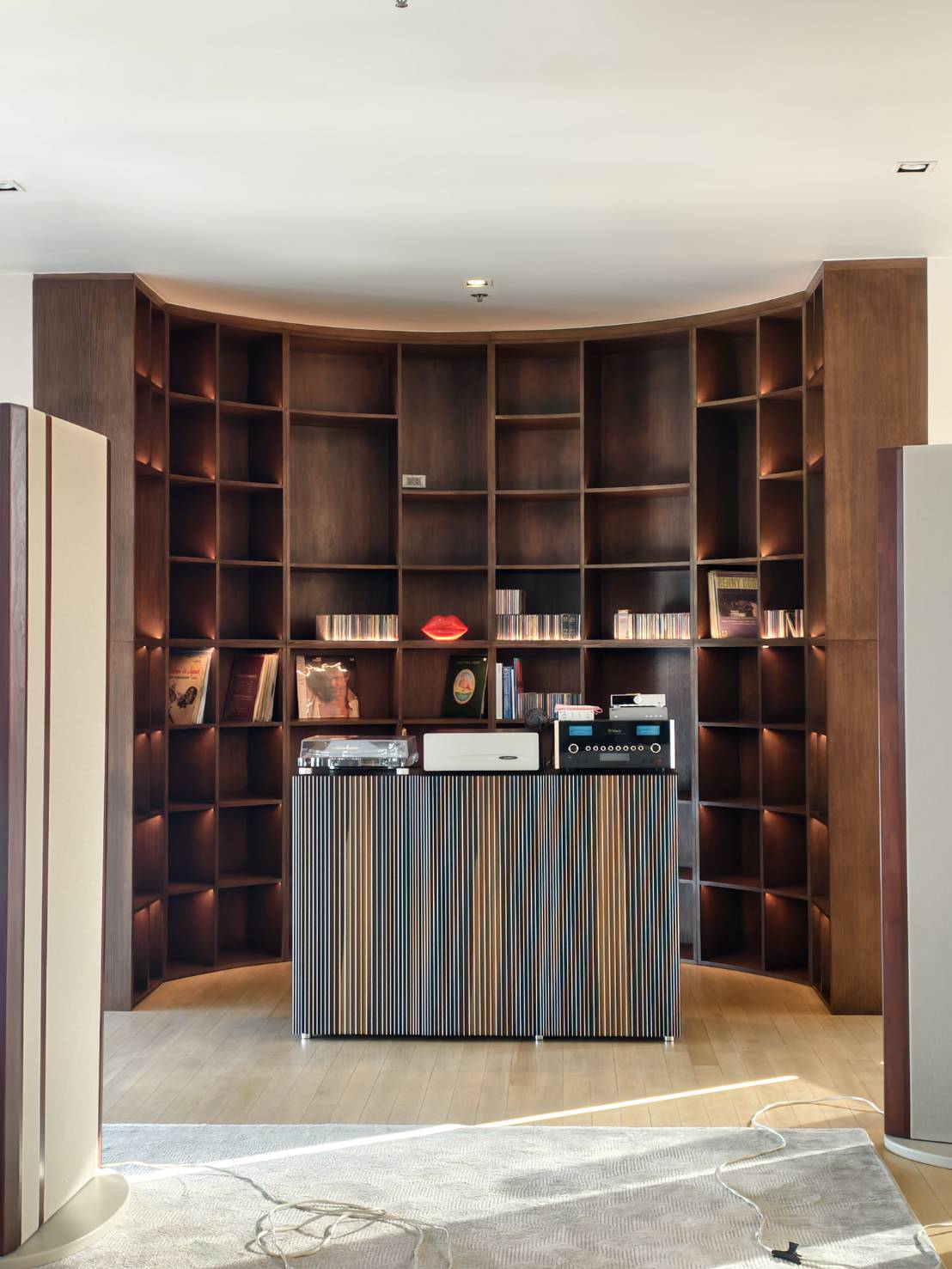 ชั้นวางของบิวท์อินดีไซน์ทันสมัย ดึงดูดทุกสายตา ออกแบบเป็นมุมโค้งรับพื้นที่อย่างลงตัว เปลี่ยนผนังธรรมดาให้เป็นจุดเด่นมีมิติ โครงสร้างผลิตจาก HMR และไม้อัดปิดผิววีเนียร์คุณภาพสูง ให้ผิวสัมผัสสวยงามและลวดลายไม้เป็นธรรมชาติ พร้อมความแข็งแรงทนทาน เหมาะสำหรับการใช้งานระยะยาว ภายในติดตั้งไฟ LED แทรกตามชั้น เพิ่มความอบอุ่นและช่วยขับเน้นของตกแต่งหรือหนังสือให้โดดเด่น เส้นสายโค้งผสานกับสถาปัตยกรรมพื้นที่อย่างพอดี สร้างภาพลักษณ์หรูหราแบบร่วมสมัย เติมบรรยากาศให้ห้องมีเอกลักษณ์ไม่เหมือนใคร